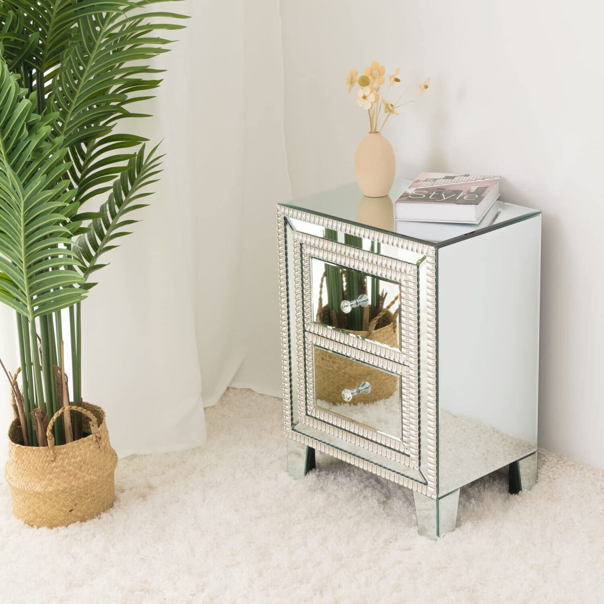Better Home Products Mirrored Nightstand with 3 Drawers