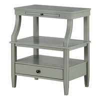 Featuring Classic Black Hardware, On A Contrasting Antique Gray Finish, The Newton Antique Gray Wood 1-Drawer Storage Nightstand Offers Warm, Inviting Elegance For Any Decor. Two Spacious Shelves And One Drawer Offer Plenty Of Nighttime Storage While The Pull Out Tray Adds Additional Surface Area When Needed And Is Finished In A Black Laminate To Prevent Moisture Damage And Scratches. The Fluted And Tapered Legs Add To The Rustic Farmhouse Look Of This Unique Nightstand. Your Purchase Includes One Nightstand.