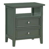 Introducing the Walker Vintage Green 2 Drawer Nightstand, a versatile and stylish addition to any bedroom. Crafted with durable Poplar and MDF, this nightstand boasts a casual yet timeless appeal. Its painted vintage green finish is beautifully accentuated by sleek nickel knobs, adding a touch of elegance to your space. With two spacious drawers featuring French dovetail joinery and metal ball bearing glides, you will have ample storage for all your essentials. The open shelf provides additional storage options, while the kiln-dried wood construction ensures long-lasting durability. Complete with tapered legs and floor glides, this nightstand combines style and practicality effortlessly. Elevate your bedroom decor with the Walker Vintage Green 2 Drawer Nightstand.Features:Poplar, MDFNickel finished knobsVersatile nightstand with casual feelPainted finish is accentuated with nickel finished knobsDrawers feature French dovetail joinery and metal ball bearing glidesAmple storage with 2 drawers and open shelfKiln-dried wood helps prevent splitting, cracking, and warpingTapered legs with floor glidesSpecifications:Product Dimensions: 22.75"W x 15.25"D x 26.75"HProduct Weight: 41 lbs.