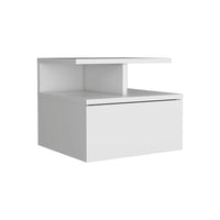 Depot E-Shop Seward Floating Nightstand, Wall Mounted With Single Drawer And 2-Tier Shelf, 12&Quot; H, White, Bedroom