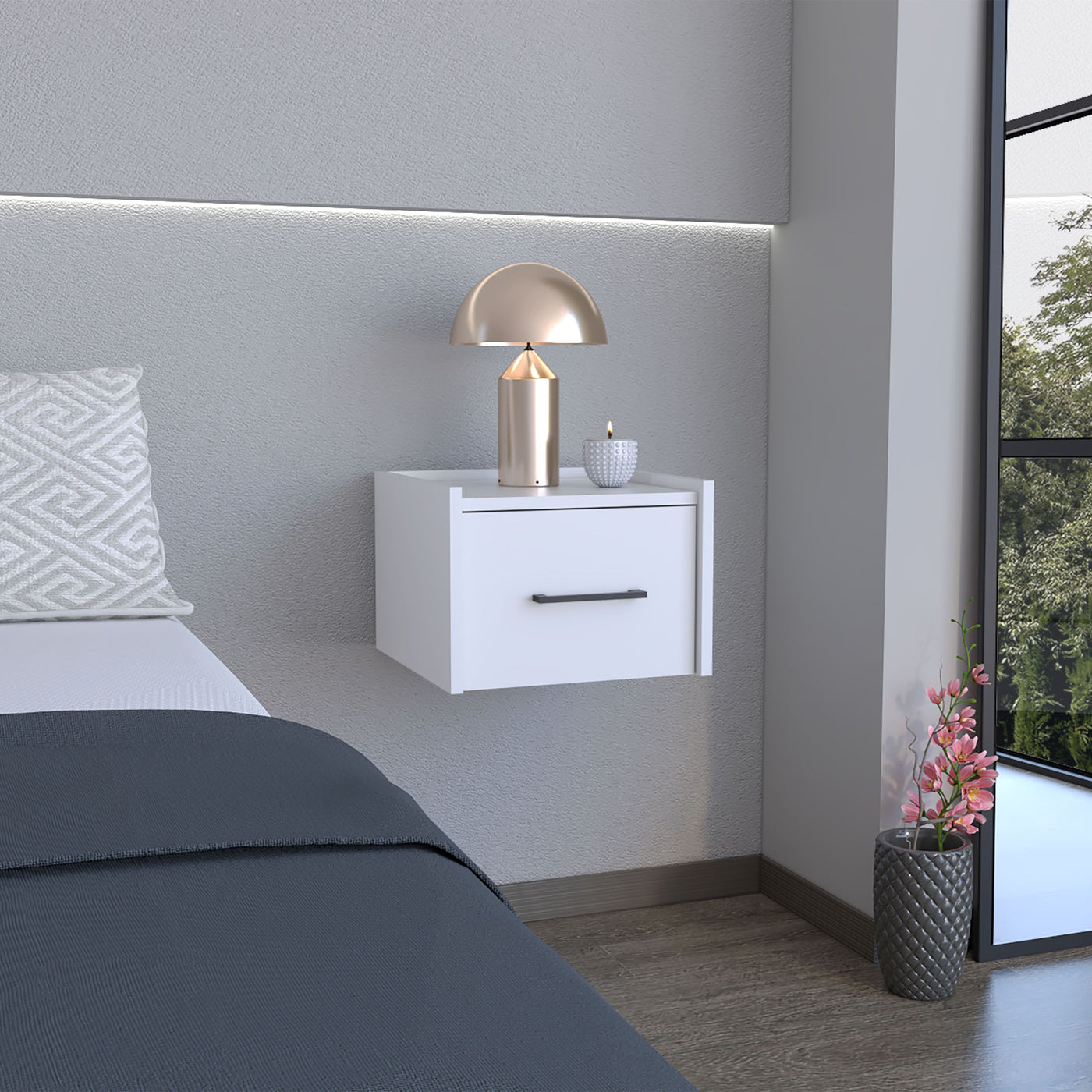 Depot E-Shop Yorktown Floating Nightstand, Space-Saving Design With Handy Drawer And Surface, White