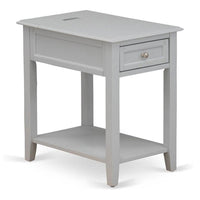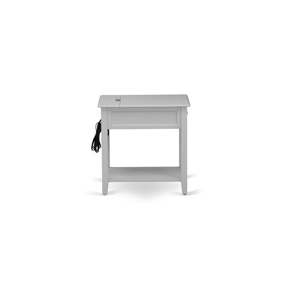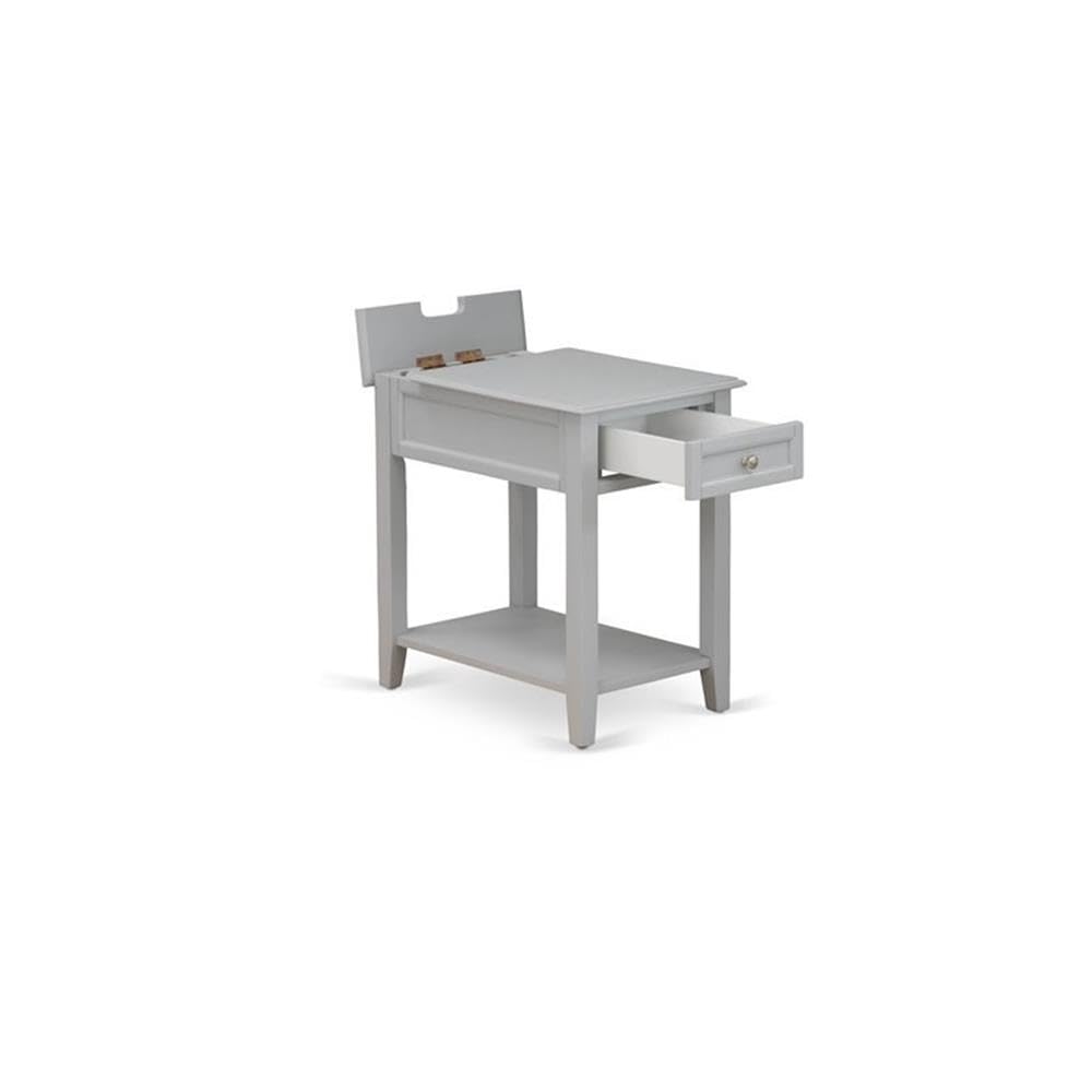 EAST WEST FURNITURE - DE-14-ET - SMALL NIGHTSTANDThis remarkable small nightstand can make a stunning addition to any home. We have a nightstand available with an Urban Gray Finish that boasts a rich and durable color. This stunning small nightstand for the bedroom not only looks great but also provides a safe and reliable space for all your room necessities. Equipped with 2 USB fast charging ports and two outlets, it allows you to charge your mobile phones and other devices, and even plug in your computer or laptop. The wood nightstand is made of Rubber Wood, which makes it sturdy and long-lasting. With exquisite workmanship and four evenly stressed legs, the overall frame structure is solid and stable. Additionally, the modern night stand features a useful bottom shelf where you can keep your most read books and magazines within reach. This stunning nightstand is low maintenance and a perfect choice for budget-conscious families. It requires simple assembly, and all hardware and tools are provided. The bedroom nightstand is quite easy to clean and always adds great appeal to your home decor.PRODUCT FEATURES: Material: Asian Wood Color: Urban Gray Dimensions of Night Stand: Length: 23.7; Width: 15.7; Height: 24. 2 USB Ports and 2 Outlet Ports AvailablePackage Included: 1 Wood Nightstand