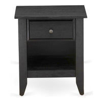 EAST WEST FURNITURE - GA-06-ET - MID CENTURY NIGHTSTANDIntroducing a remarkable addition to any household, this wood nightstand exudes elegance. Our offering includes a wood nightstand featuring a Wire Brushed Black Finish, a captivating color that exudes richness and durability. With the mid-century design, this nightstand provides a secure and dependable space for all your room essentials. Crafted from rubberwood, this small nightstand boasts sturdiness and longevity. The meticulous craftsmanship and four evenly distributed legs ensure a solid frame structure, offering ample stability. Additionally, the convenient bottom shelf allows you to keep your favorite books and magazines within easy reach. This stunning small nightstand requires minimal upkeep, making it an ideal choice for budget-conscious families. Assembly is straightforward, and all the necessary hardware and tools are provided. Cleaning this small nightstand is a breeze, ensuring its timeless appeal is maintained effortlessly.PRODUCT FEATURES: Material: Asian Wood Color: Wire Brushed Black Dimensions of Night Stand: Length: 21; Width: 18; Height: 24.Package Included: 1 Small Nightstand