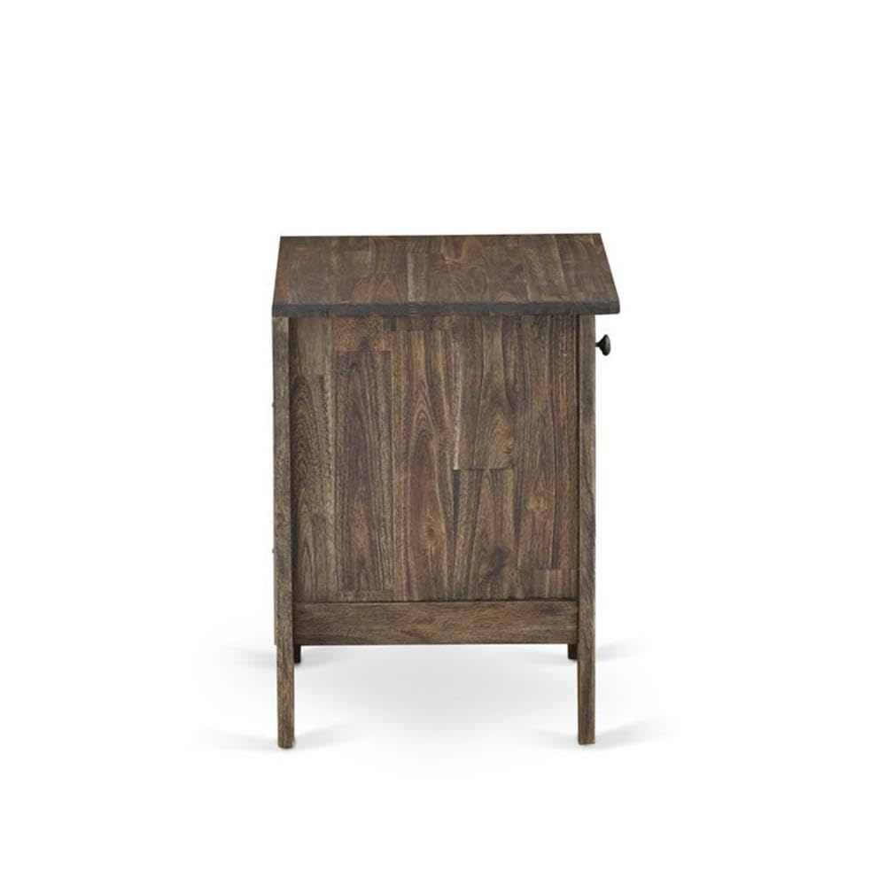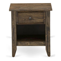EAST WEST FURNITURE - GA-07-ET - MODERN NIGHTSTANDIntroducing an exquisite addition to enhance any household, this wooden nightstand boasts stunning beauty. Our offering includes a wood nightstand with a Distressed Jacobean Finish, a captivating color that exudes richness and durability. With its modern mid-century design, this nightstand provides a secure and dependable space for all your room necessities. Crafted from sturdy rubberwood, this bedroom nightstand ensures long-lasting durability. The meticulous craftsmanship and four evenly distributed legs guarantee a solid frame structure, offering ample stability. Furthermore, the convenient bottom shelf allows you to keep your most cherished books and magazines within easy reach. This beautiful nightstand requires minimal maintenance, making it a perfect choice for budget-conscious families. Assembly is simple, with all the necessary hardware and tools provided. Cleaning this wooden nightstand is a breeze, ensuring it maintains its appealing allure at all times.PRODUCT FEATURES: Material: Asian Wood Color: Distressed Jacobean Dimensions of Night Stand: Length: 21; Width: 18; Height: 24.Package Included: 1 Wood Nightstand