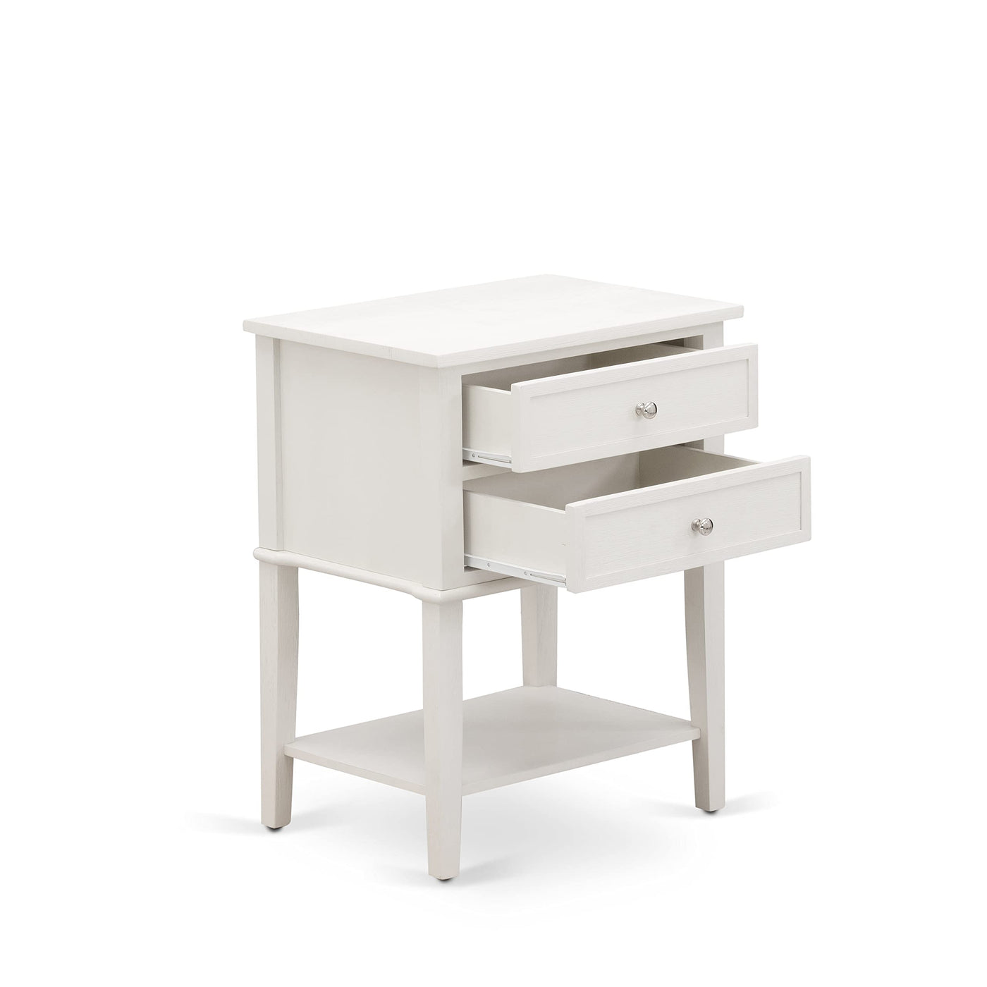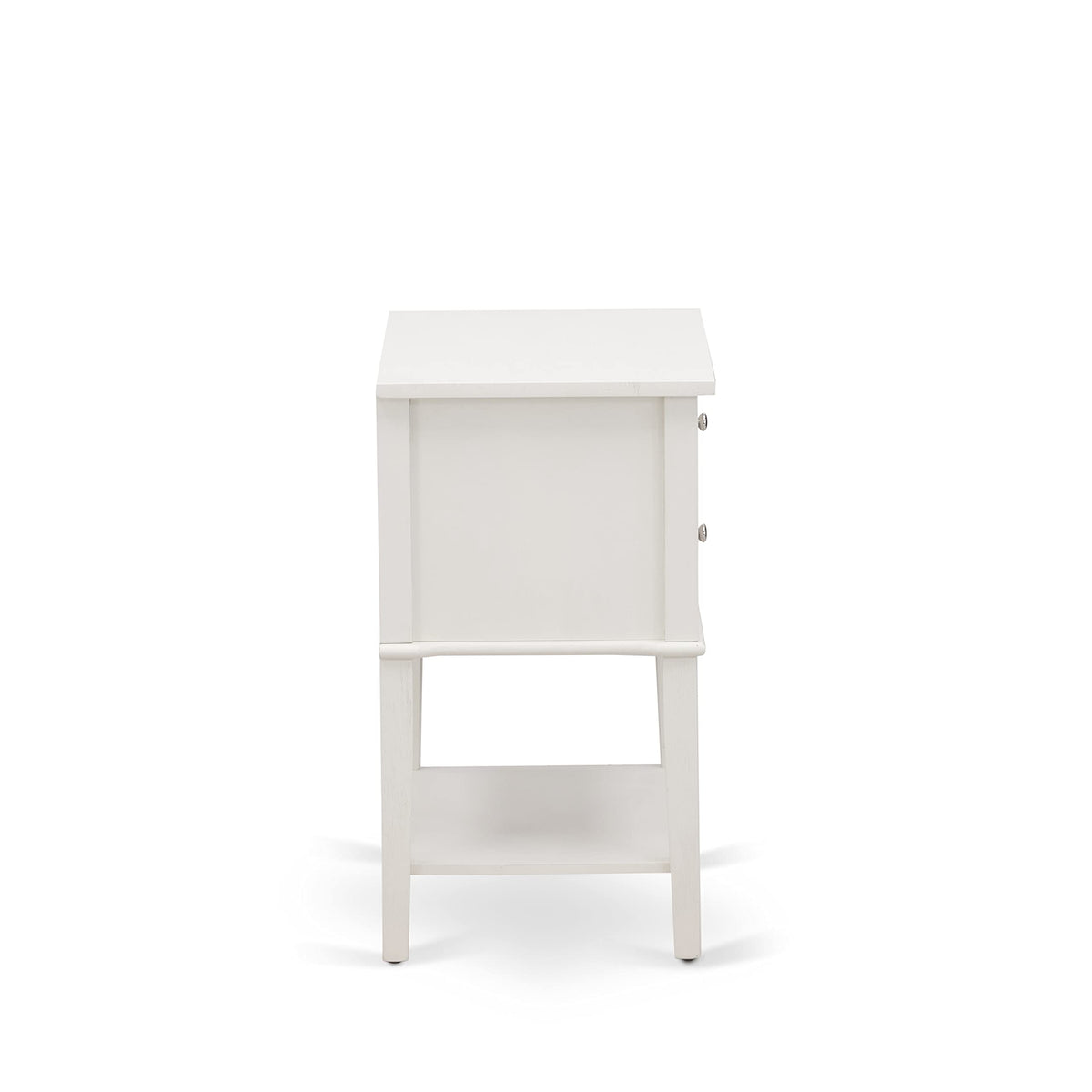 EAST WEST FURNITURE - VL-0C-ET - NIGHTSTAND BEDROOM WITH 2 WOOD DRAWERSThis bedroom nightstand features a sleek and understated design with 2 drawers, making it a versatile addition to any home decor. Crafted from premium Asian wood, commonly referred to as Rubber Wood, our distinctive wooden nightstand adds an element of elegance to any room. It embodies innovative design principles and a forward-thinking approach to furniture. With its Wire Brushed Butter Cream color, this petite nightstand exudes a sense of opulence, elevating its overall aesthetic. The attractive color combination ensures seamless integration with diverse room decor styles. The exceptional durability of our bedroom nightstand is attributed to the use of high-quality Rubber Wood in its production. We've designed this bedside table with a focus on both durability and aesthetics. Assembly is a straightforward process, thanks to the comprehensive instructions included in the package. Our compact nightstand boasts user-friendly components, ensuring a hassle-free assembly experience. Keep your favorite books and magazines within reach on the convenient bottom shelf. This stunning small nightstand is low-maintenance, making it a perfect choice for budget-conscious families. Assembly is simple, with all hardware and tools provided. Our wooden nightstand is easy to clean and consistently adds a touch of charm to your room.BEDROOM NIGHTSTAND FEATURES: Material: Asian Wood Color: Wire brushed Butter Cream Dimensions of Night Stand: Length: 22; Width: 15.7; Height: 28.Package Included Night Stand