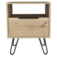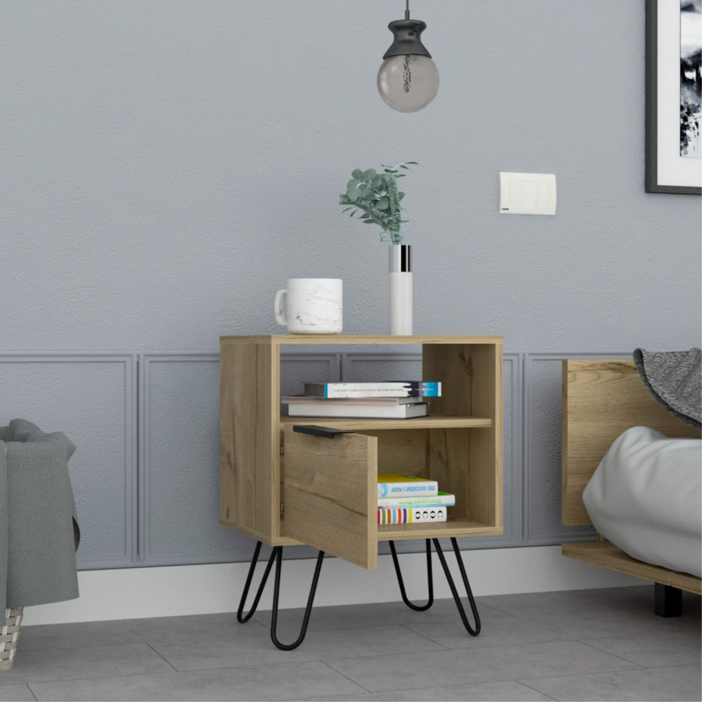 Nightstand 22&Quot; H, 1 Open Shelf, Single Door Cabient, Hairpin Legs, Light Oak