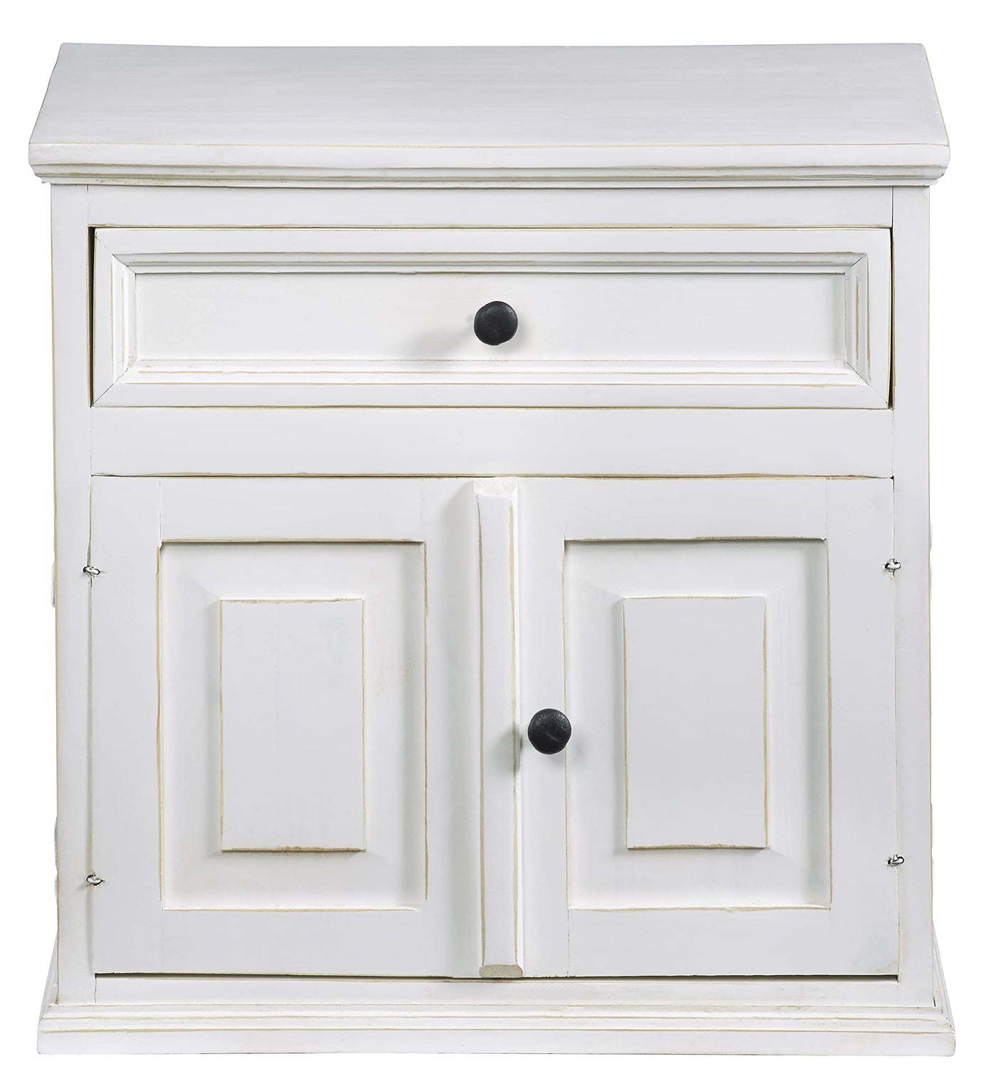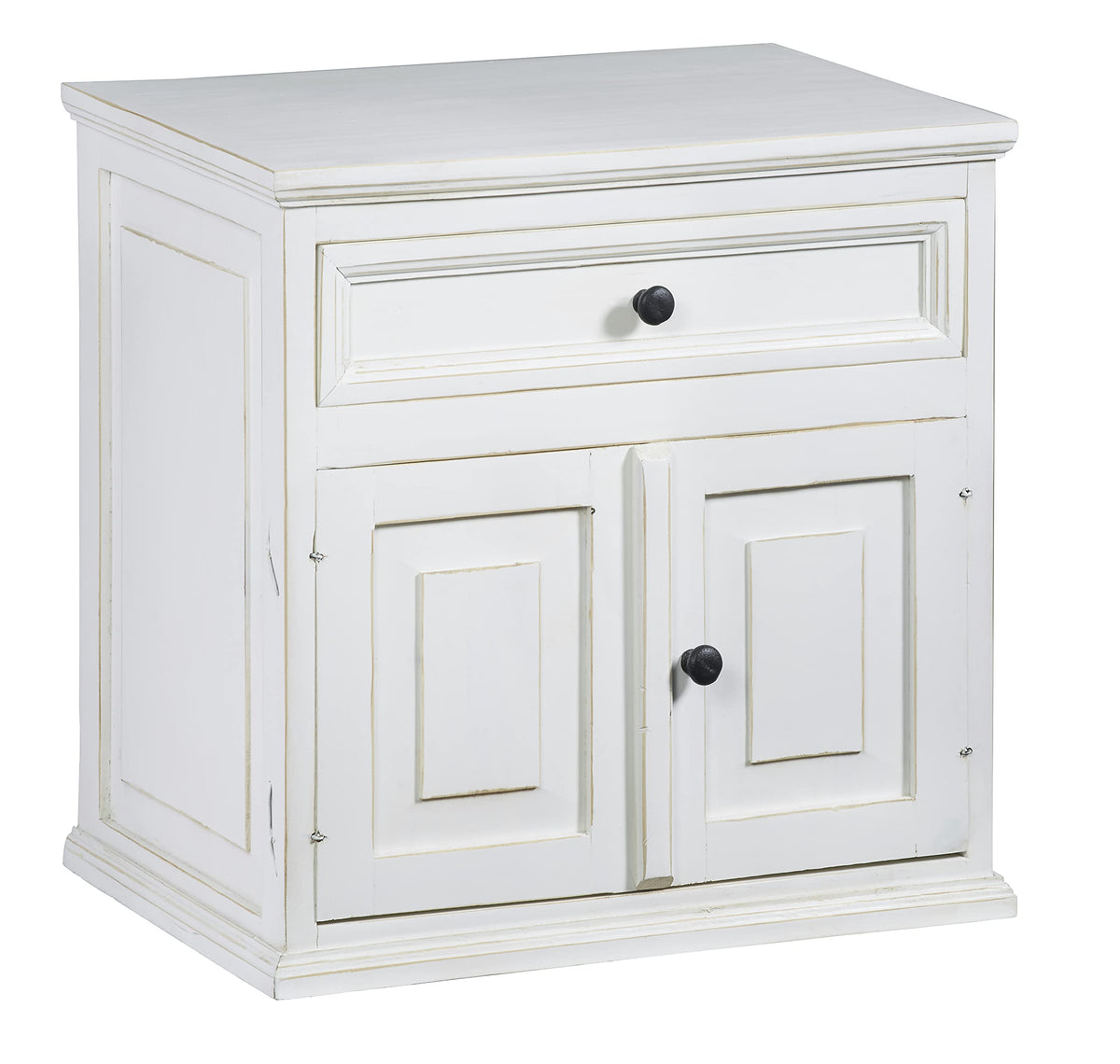 A White Nightstand That Is The Perfect Choice If You Need Something That Goes With Pretty Much Everything. A Worn White Finish That Is Clean But Unpretentious. One Drawer And A Spacious Cabinet For Your Storage Needs. The Clean Transitional Lines Can Easily Work For Anything From A Modern, Edgy Design To A More Feminine And Relaxed Farmhouse Feel. One Finished Drawer With Dark Bronze Hardware And A Spacious Cabinet For Storage.
