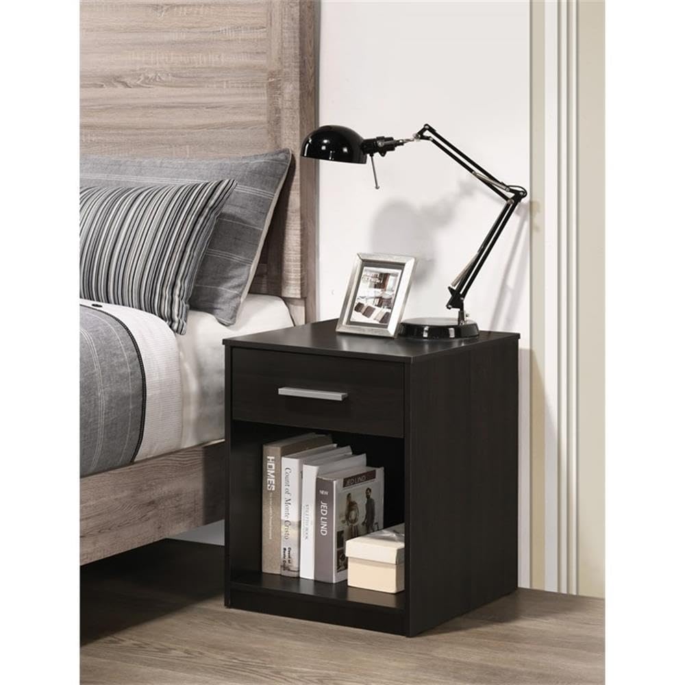 A Small Nightstand Perfect When You Are Tight On Space. This Nightstand Features One Drawer With A Drawer Pull And An Open Bottom Shelf For Display Or Storage. A Great Espresso Finish Will Work With Many Styles And Settings.