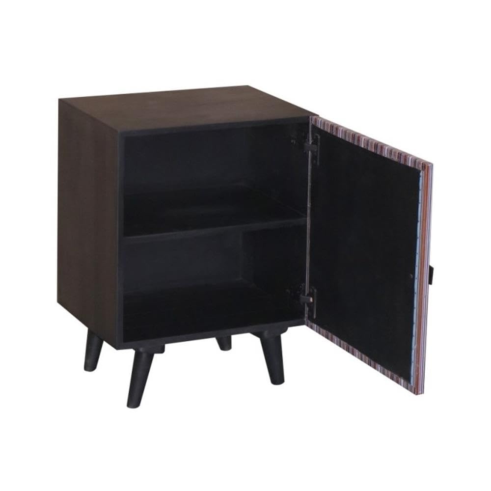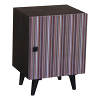 DescriptionNo better way to make a statement than with this nightstand. A very hip art deco inspired design with both style and function. Featuring a spacious cabinet with 1 interior shelf for hidden storage. A very cool way to add some style and color by your bed, sofa, or bath. Perfect for small space living.