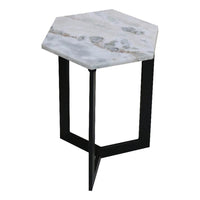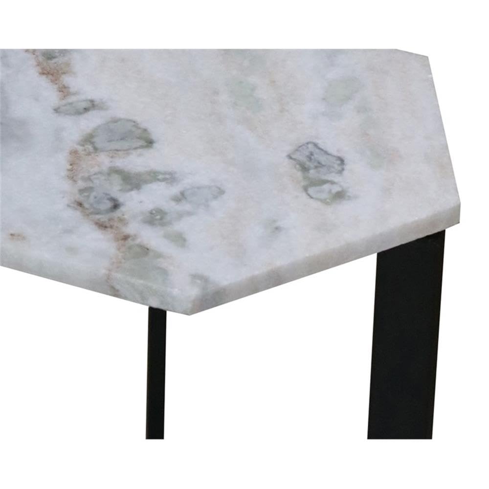 Gorgeous marble top tables with black iron transitional style bases. Exquisite white marble with a touch of gray & amber veining. An exciting way to add a natural organic element to your décor. The black iron bases are cool and unique designs that not only support the marble table tops but complements them perfectly. These round shapes are great options for modular upholstery or anything that requires shape or energy. These pieces will not disappoint.