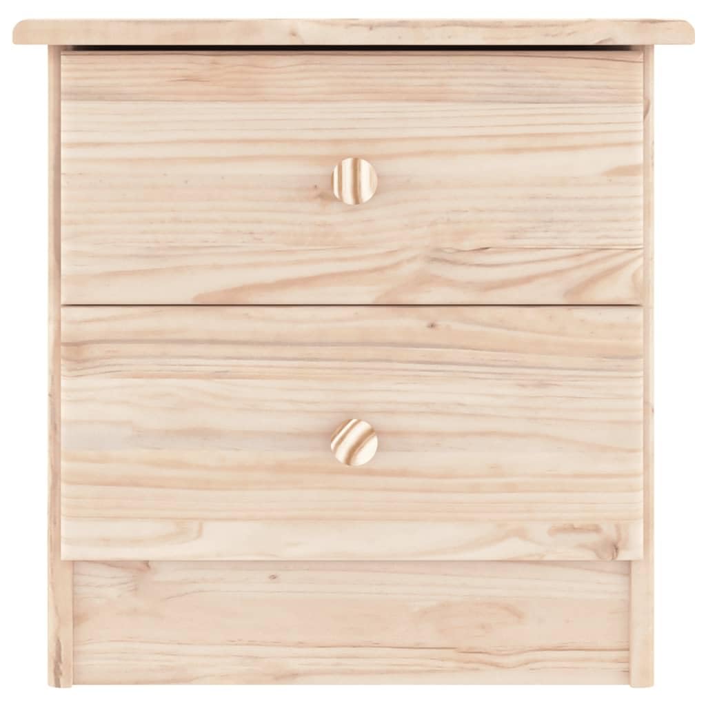 vidaXL Solid Pine Wood Bedside Cabinet ALTA| Smartly-Designed Rectangular Nightstand| Wooden Knobs & Untreated Surface, Ample Storage with 2 Drawers.
