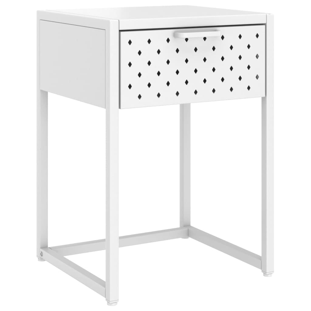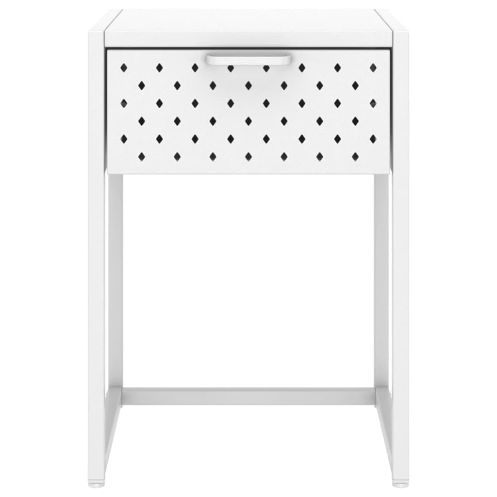vidaXL Steel Nightstand in White - Industrial Style Bedside Stand with Drawer and Adjustable Height Perfect for Bedroom Decor with Sturdy Top for Essentials