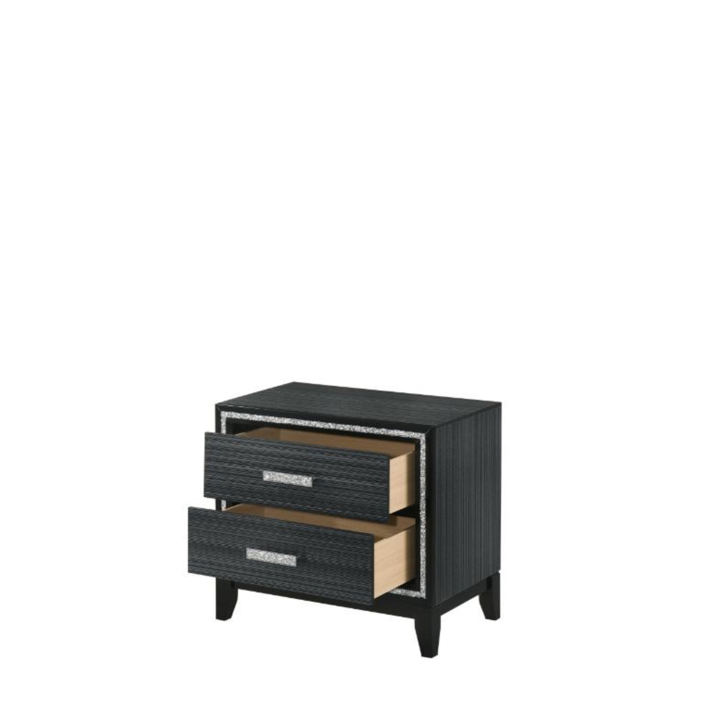 Acme Haiden Wooden 2-Drawer Nightstand with Silver Trim in Weathered Black