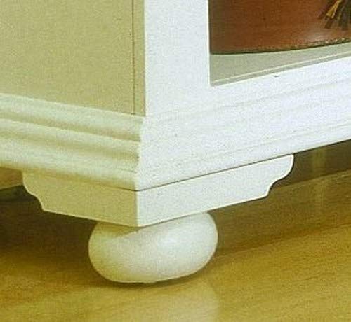 Bring instant charm and warmth to your bedroom with Cottage Traditions’ small nightstand from American Woodcrafters. The nightstand, finished in eggshell white, sits on a decorative shaped block base supported by bun feet. One drawer with solid wood knob and open base shelf storage add simplicity and flexibility. Built from solid wood with corner block construction and English dovetail on front and backs, the nightstand combines style with functionality. The drawer’s solid wood sides and backs feature pine veneer bottoms for snag free storage of delicate items, center guided metal drawer glides with built in stops for stability, and dust proofing on bottom drawers for added protection. Mortise and tenon construction, solid pine and pine veneers give this furniture strength and durability as well as charm.