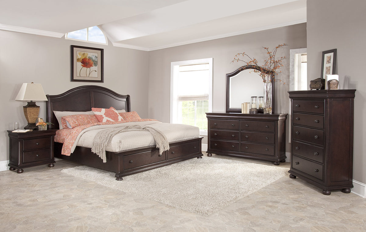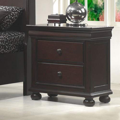 Traditional elegance with a contemporary flare, make the Hyde park bedroom collection perfect for any décor style. The Hyde Park nightstand features 2 drawers to keep your nighttime items close. The drawers are constructed using center mounted full extension drawer glides with built in stops for safety, French and English dovetail construction to ensure maximum storage while the felt lined top drawer and dust proof panel under the bottom drawer will keep your treasured items protected. Stylish framed end panels, shaped moldings and oil rubbed bronze hardware accent the rich merlot finish.