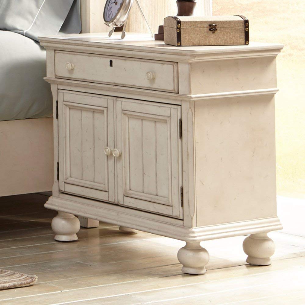 Evoking images of a quiet retreat by the sea, the Newport Night Stand offers classic cottage styling at its finest! Attention to detail is found in every aspect from the antique birch finish, solid poplar and birch veneer construction to the detailed molding and faux keyhole emblem. The night stand features one spacious drawer with English dovetail construction, finished interior and full extension ball bearing drawer glides for maximum storage and durability. The two door cabinet provides additional space for storing larger items.