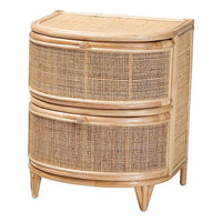 Baxton Studio Oleta Modern Bohemian Natural Brown Rattan 2-Drawer Nightstand