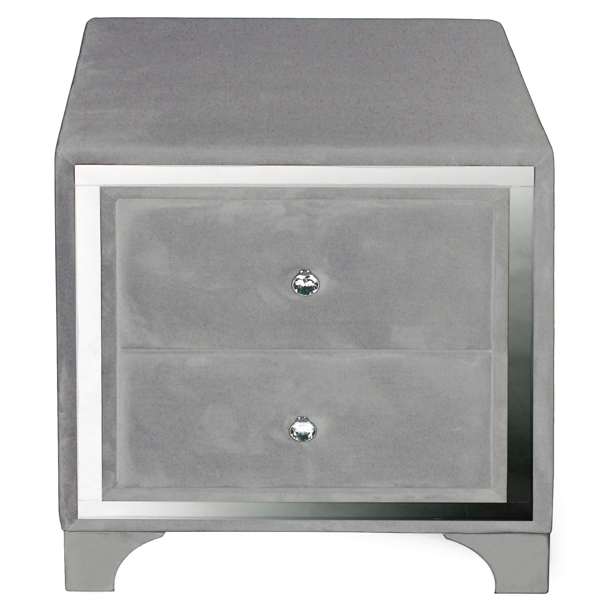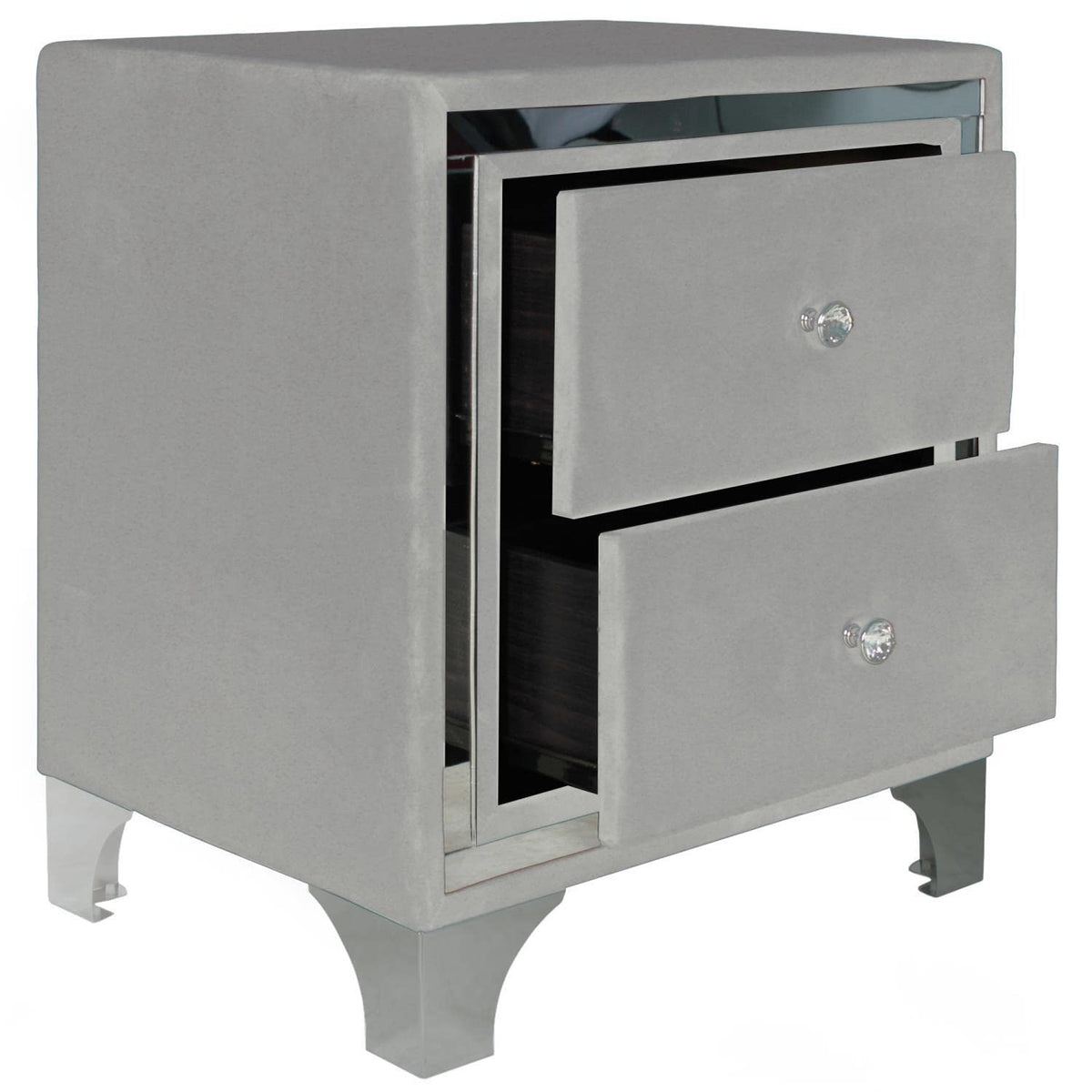 Better Home Products Monica Velvet Upholstered 2 Drawer Nightstand in Gray