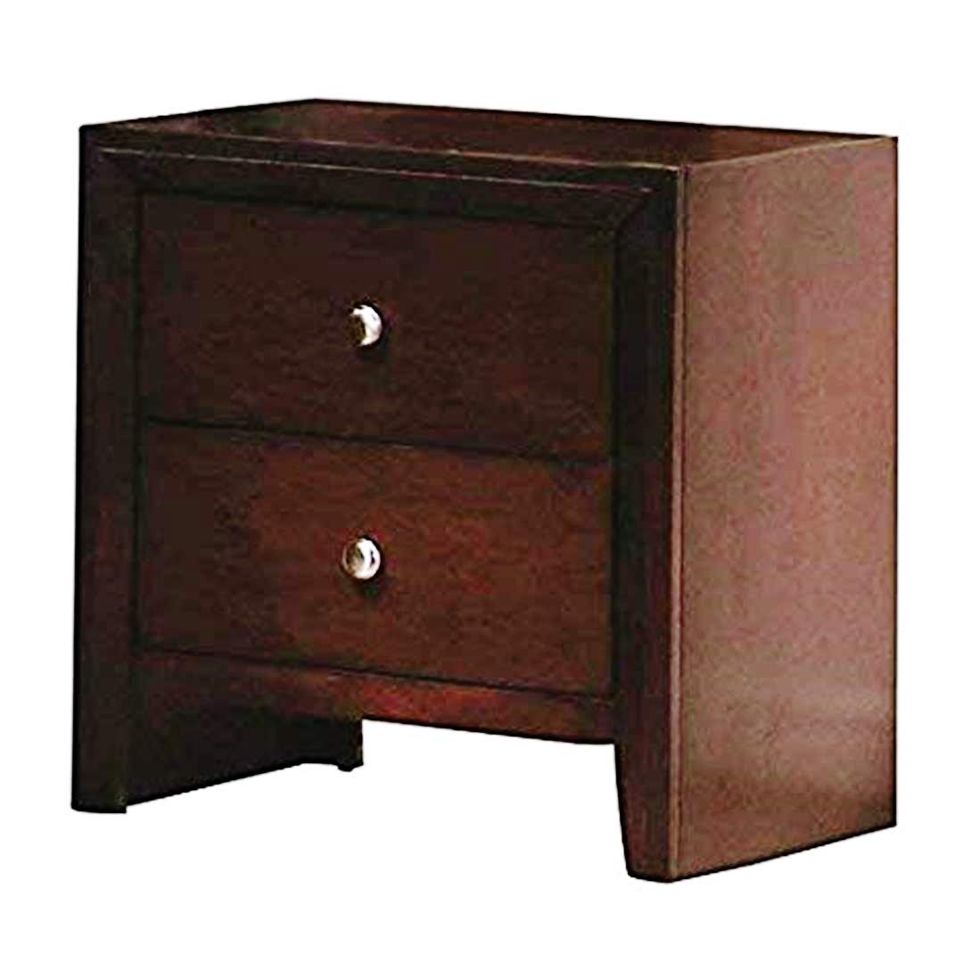 An accent piece like this serenity nightstand is fantastic way to complete a bedroom set. This nightstand has a wide, roomy top that's perfect for a table lamp and alarm clock or picture frame (or all three). store an extra fleece or your favorite nighttime reading material in the two roomy drawers. With straight lines and simple craftsmanship, this nightstand imparts an understated air. Warmly finished in Rich Merlot.