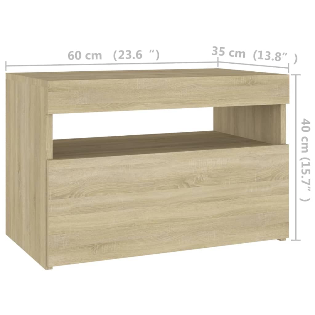 vidaXL 2X Bedside Cabinet & LED Lights Home Indoor Telephone Stand Bedside Organizer Nightstand Bed Couch End Table Furniture Sonoma Oak
