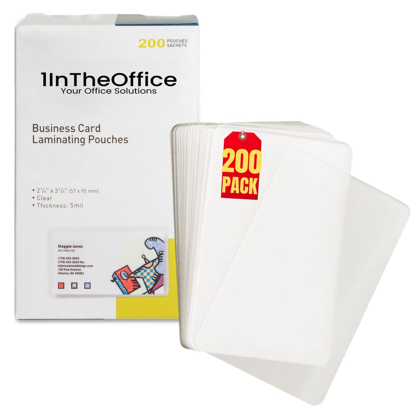 1Intheoffice Business Card Laminating Pouches, 5 Mil Clear Laminating Pouch - For Business Card - Pre-Trimmed, Moisture Resistant, Fade Resistant, 2.25' Width X 3.75' Length, 200 Packuse These Mid-Size Laminating Pouches To Make Durable Bookmarks, Flashcards, And Labels. They'Re Also Ideal For Elements For Bulletin Board Displays And Other Small Arts And Crafts Projects. With Sizes Small Enough For Business Cards And Large Enough For Calendars, There'S A Laminating Pouch For Most Home And Office Needs. Laminate Tags, Instructions, Placemats, Recipes, Chore Charts, And Other Items You Want To Preserve.Product Details:- Clear Material Completely Displays Your Contained Item- Thick Construction Protects Cards From Moisture, Fading And Abuse- Transparent Material Keeps Important Information Completely Visible- Standard-Weight Construction For Occasional Handling, Filing Or Posting- Designed For Ibico, Gbc And Other Thermal Laminators (Each Sold Separately)