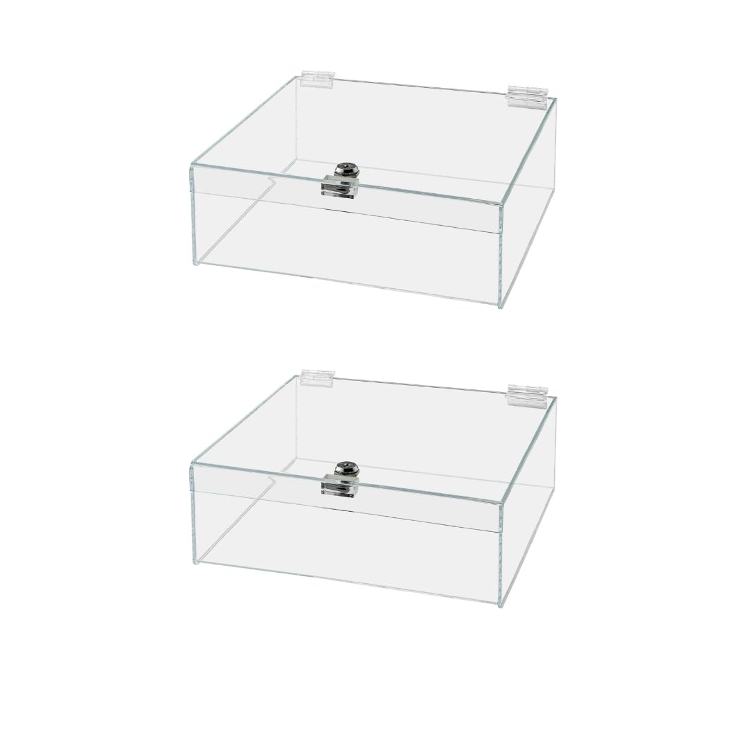 2 Pack Acrylic Locking Display Case With Keys 12'W X 12'D X 6'H Clear Countertop Tray With Lid Product Features: Clear Acrylic Countertop Display Case With Lock And 2 Keys. Overall Dimensions: 12.25'W X 12.5'D X 6.5'H. Inner Dimensions: 12'W X 12'D X 6'H. Thickness: 0.118', 3Mm, 1/8'. Proudly Made With Premium High Quality Acrylic This Sturdy And Professional Display Case Will Complement Any Retail Store, Flea Market Booth, Exhibit, Trade Show And Expo. These Lightweight Showcases Take Up A Small Amount Of Counter Space While Providing Security For Your Retail Merchandise. Let Your Customers Get A Crystal Clear View Of Your Products While Maintaining A Secure Environment. Our Display Cases Have A Clear Plastic Acrylic Top Which Allows A Collector Or Enthusiast To Highlight Their Favorite Pieces, Rather Than Keeping Them Packed Away In A Box Or Other Packaging. These Plexiglass Display Cases Have A Locking Top Hinged Lid That Provides A Safe Place To Both Store And Showcase A Variety Of Items! They Come With 2 Keys For Easy Access To Your Prized Collectibles. These Sleek, Durable Lucite Cases Are The Perfect Choice For Home Collectors And Aficionados. They Are An Excellent Choice To Showcase Watches And Jewelry, Coins And Currency, Arrowheads And Artifacts And Other Types Of Memorabilia. *All Sizes Are Approximate *Tolerances: Thickness +/- 10%