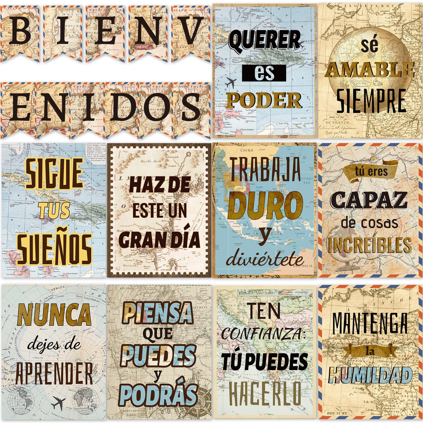 21Pcs Back To School Spanish Classroom Posters Map Travel Bienvenidos Inspirational Spanish Posters Spanish Motivational Poster