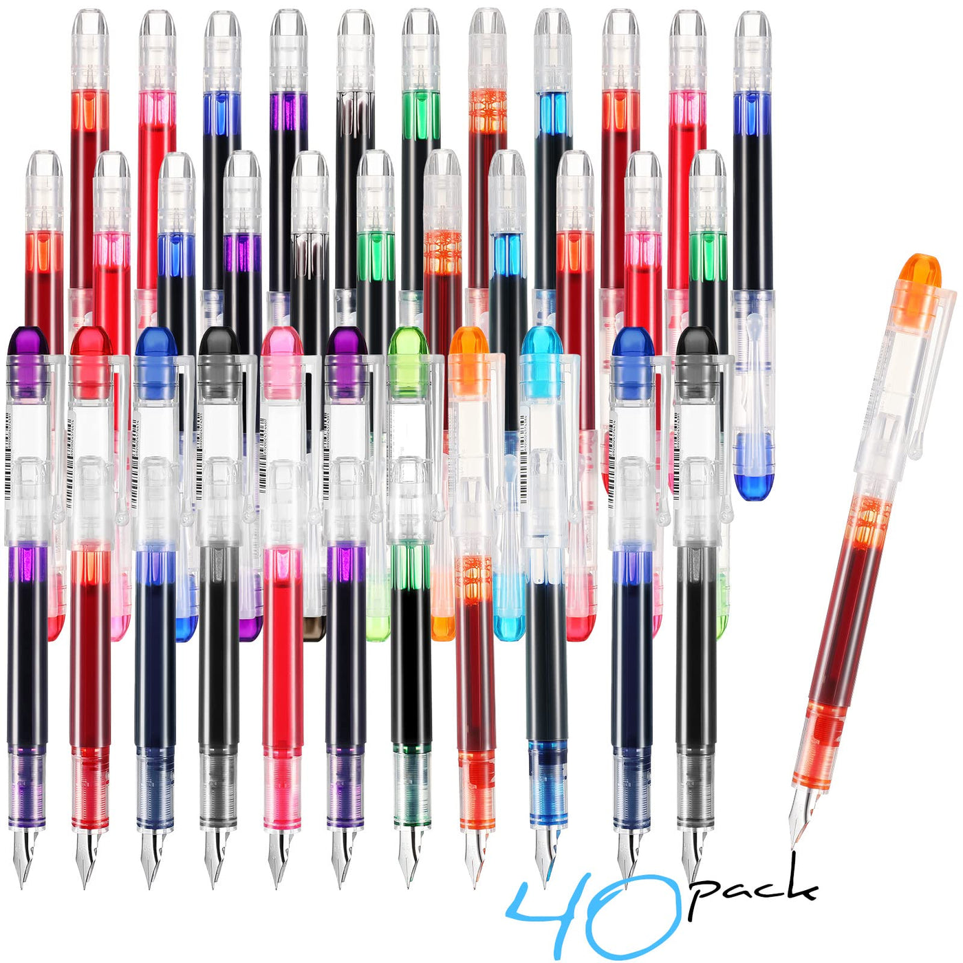 40 Pack Disposable Fountain Pens Set, Colored Ink Extra Fine Nib Classic Design Large Capacity Calligraphy Pens For Journaling,