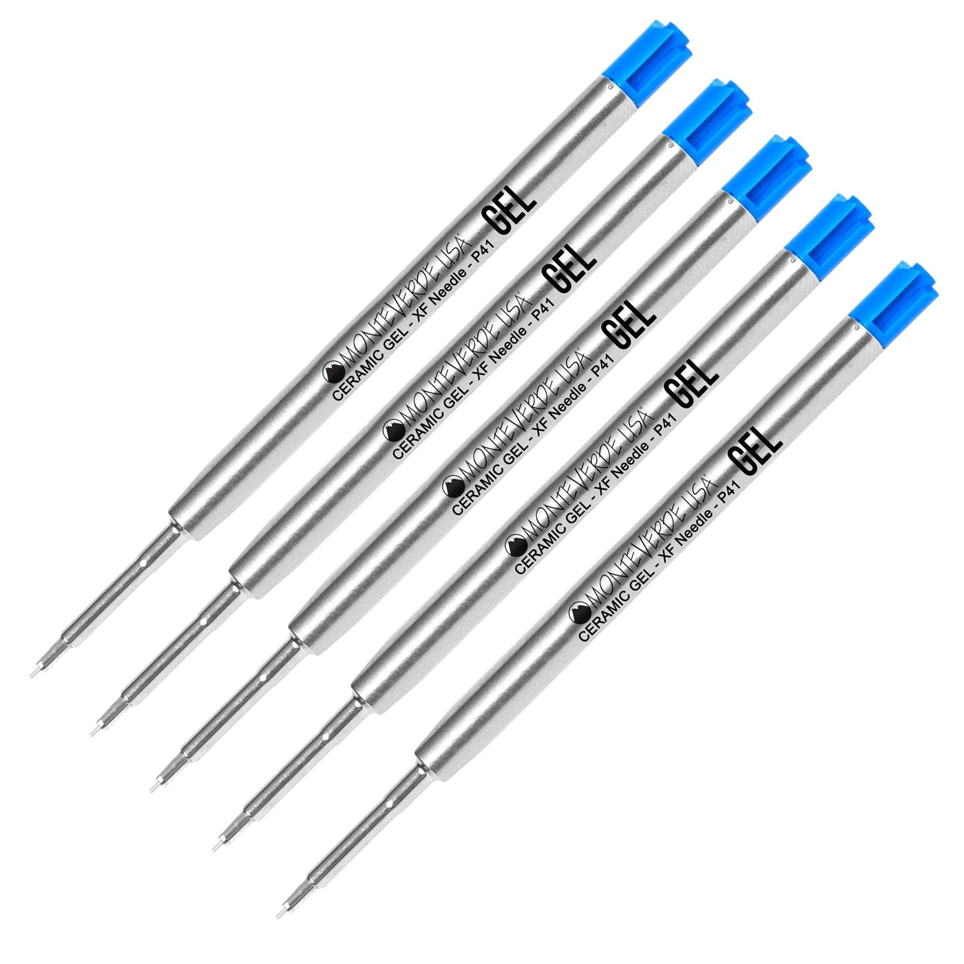 5 - Monteverde Capless Gel Ballpoint Refill To Fit Parker Ballpoint Pens, Needle Point, Extra-Fine (Bulk Packed) (Blue)