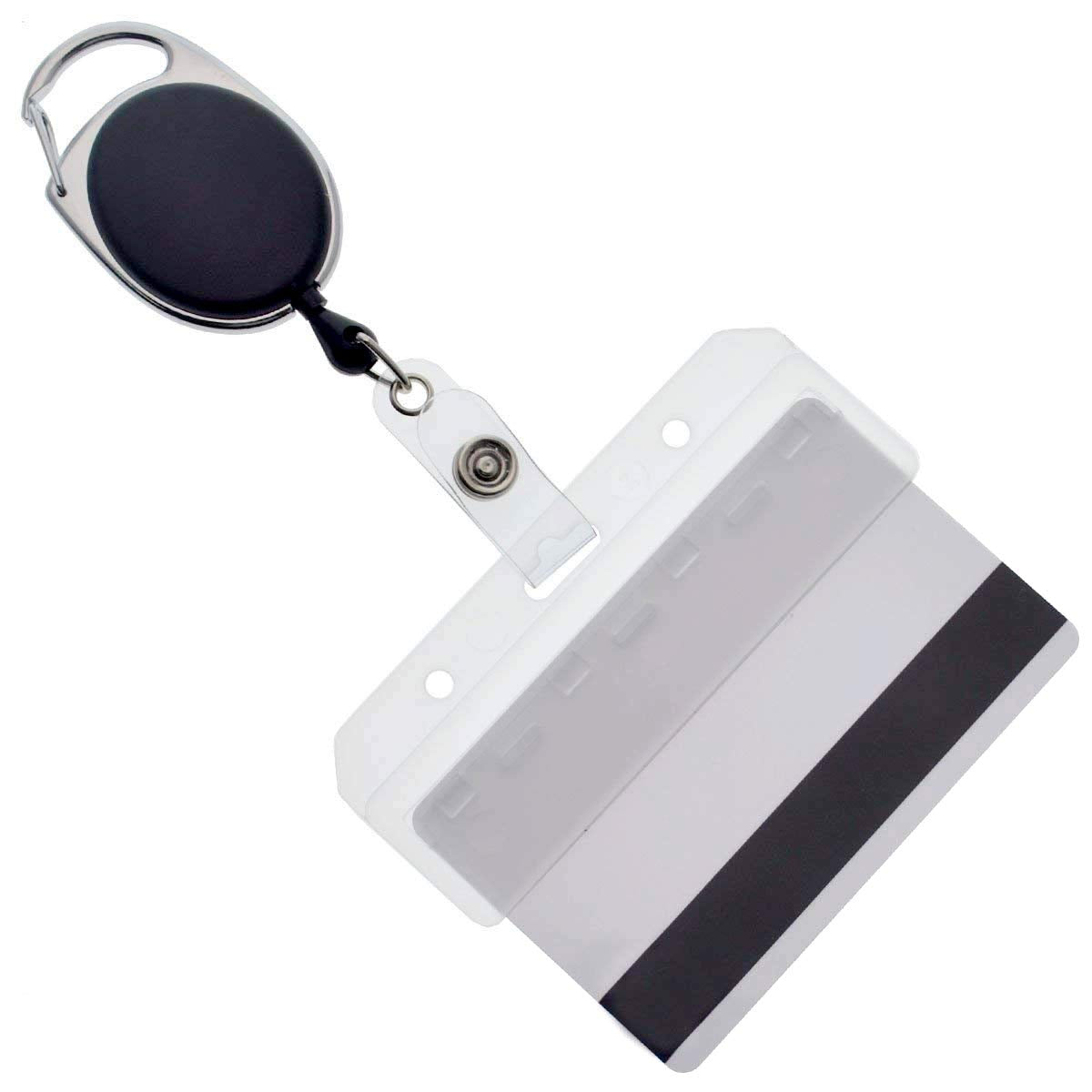 5 Pack - Premium Carabiner Badge Reels With Half Card Badge Holders - Leaves Mag Stripe Exposed For Pos And Swipe Cards By Speci
