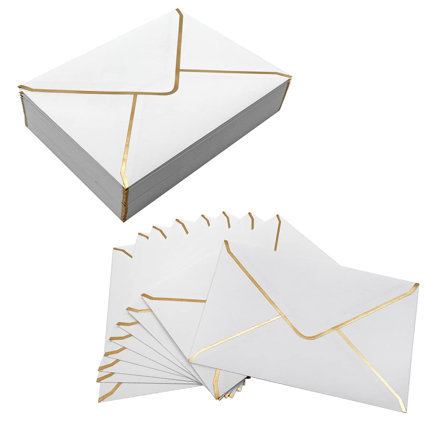 Features: This 5X7 Invitation Envelopes Are Made Of 160 Gsm Luxury Paper. Each Package Contains 50 Pcs A7 Envelopes. The A7 Invitation Envelopes Own An Elegant Design: V-Flap Designed With Gold Foil Borders. These 5X7 Wedding Invitation Envelopes Could Be Quickly Self Sealed. Envelopes For 5X7 Cards Will Be Widely Used For Wedding, Gift Cards, Invitations, Baby Shower, Photos, Graduation Etc. Specifications: Material: 160 Gsm Paper. Color: Black, White, Blue, Green, Burgundy. Size: 5X7 Inch. Package Included: 50Pcs 5X7 Invitation Envelopes