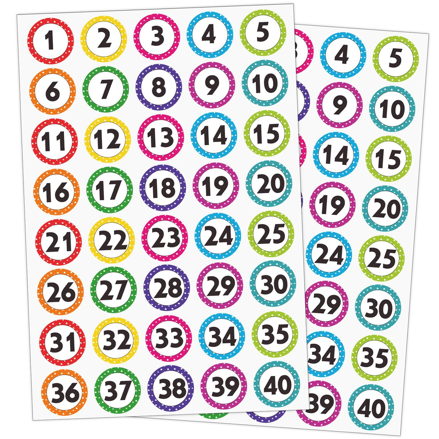 600 Pcs Number Stickers 1-40, 15 Sheets Dot Consecutive Number Labels Self-Adhesive Water/Tear Resistant Number Stickers Without