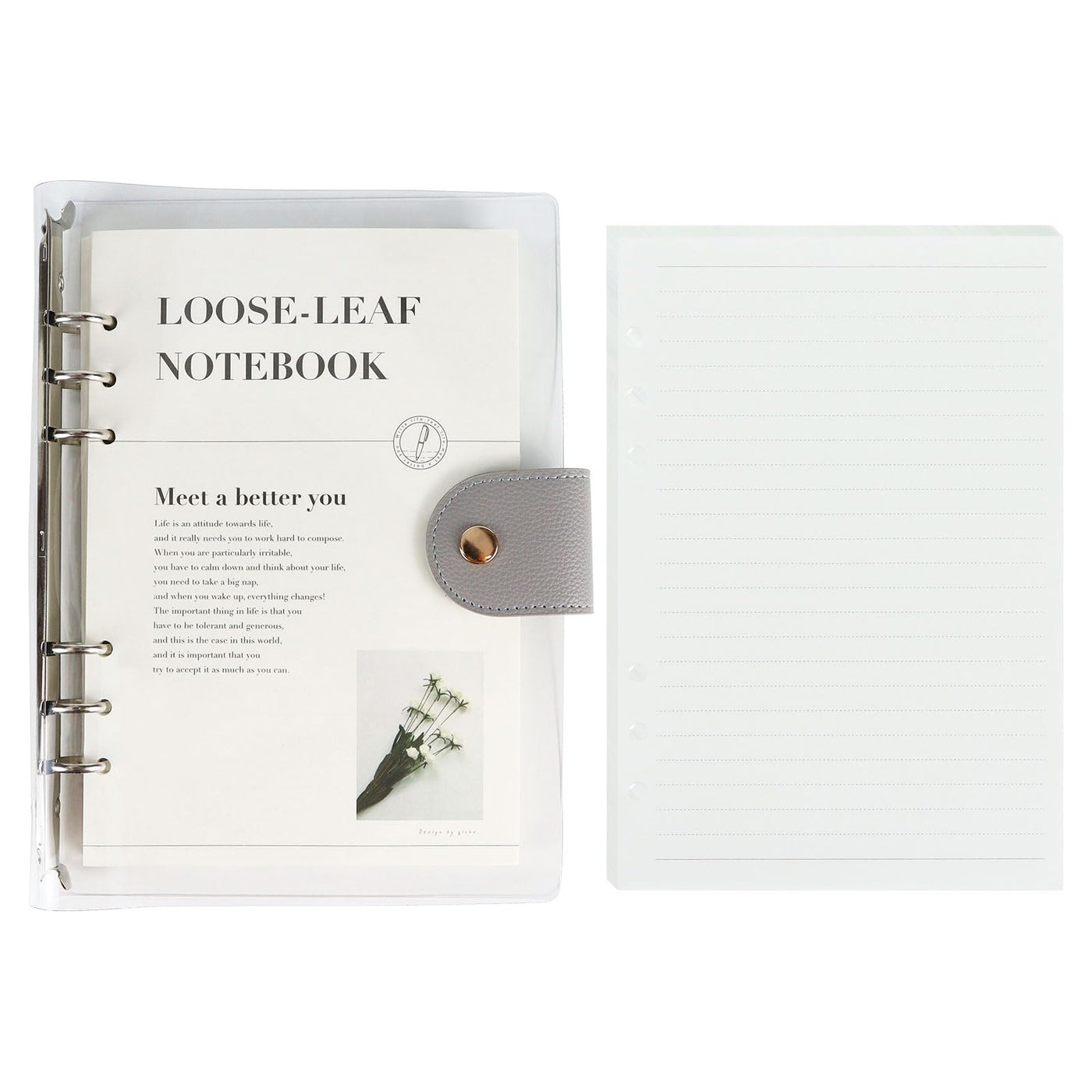A5 Binder 6-Ring Clear Binder Notebook Cover, Silver Round Ring With 90 Sheets Lined Inner Papers, A5 Planner Budget Binder With