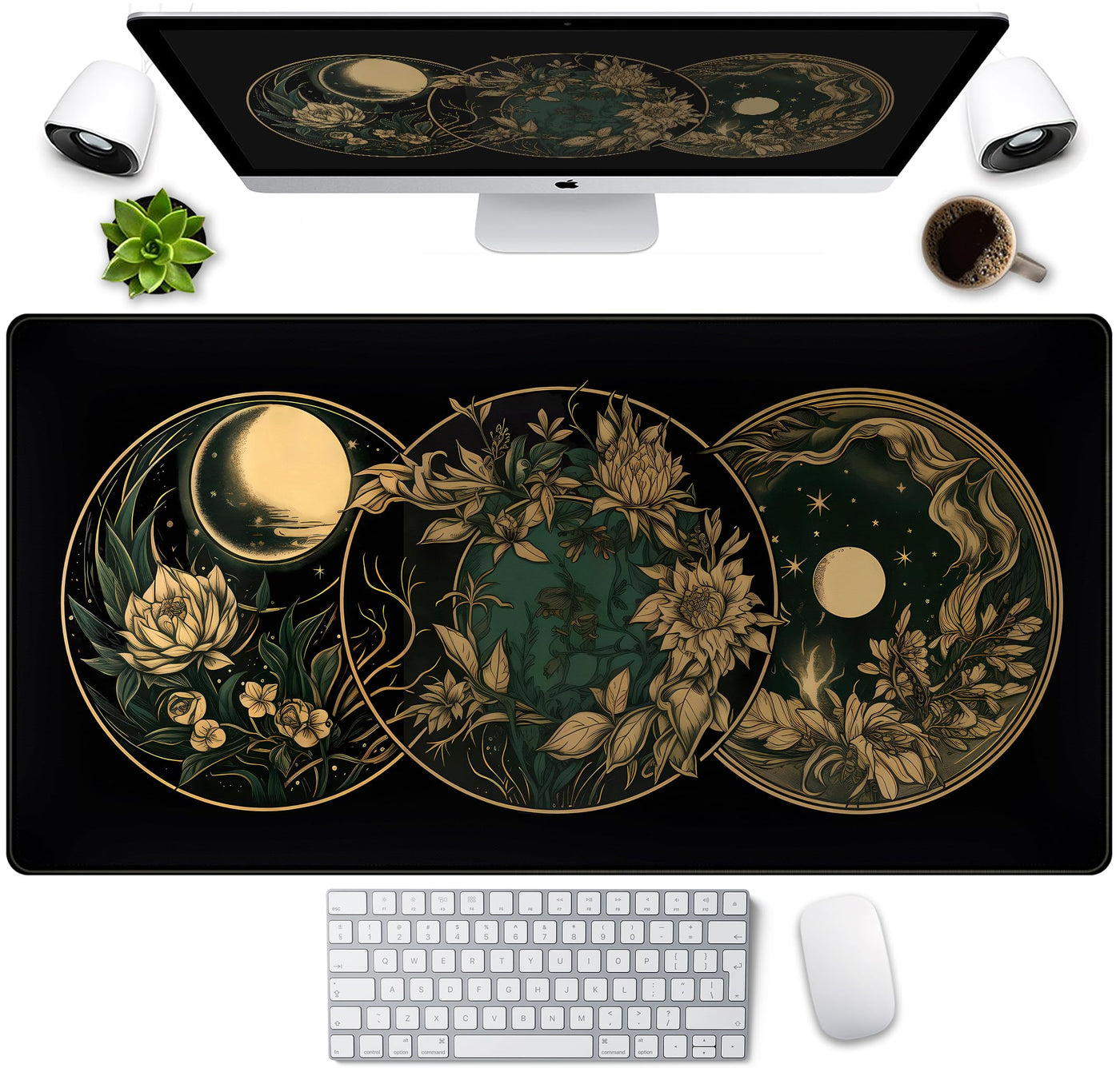 Aesthetic Celestial Desk Mat Vintage Flowers Desk Pad Large Mouse Pad Gaming Mousepad Extended Xxl Computer Mat 31.5X15.75 In, C