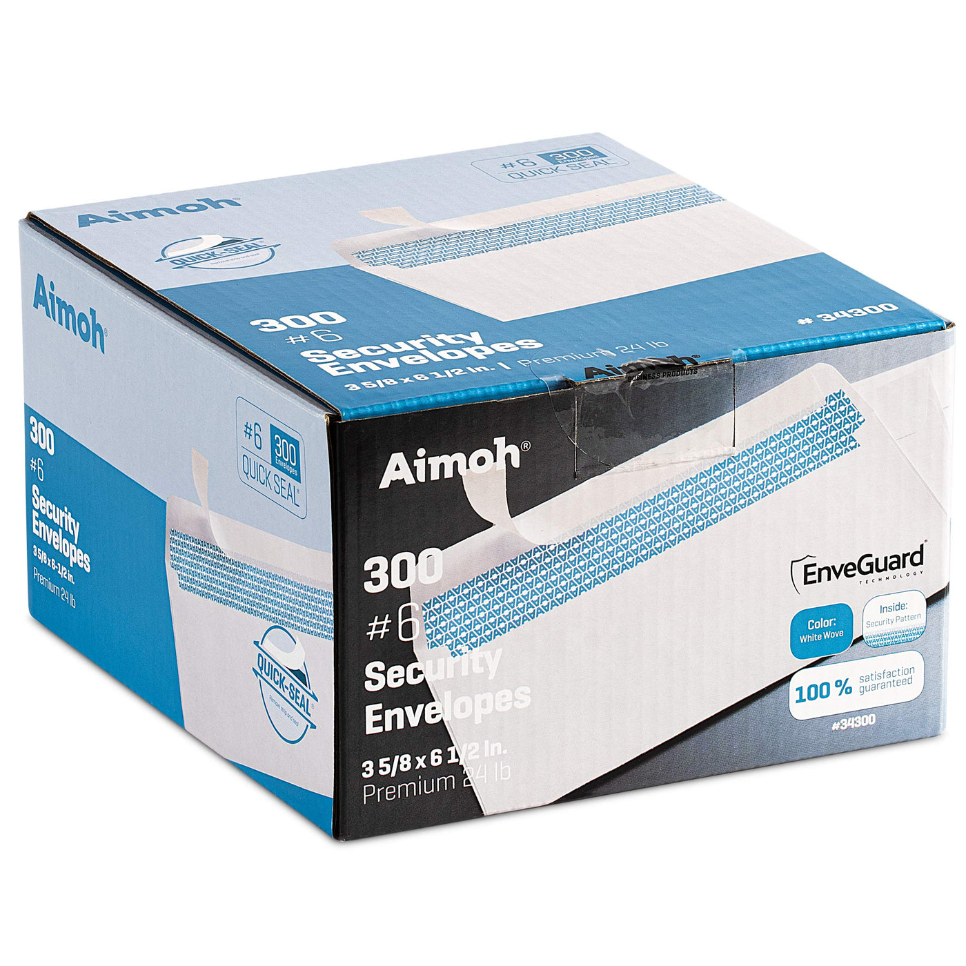 #6 3/4 Security Tinted Self-Seal Envelopes - No Window, Enveguard, Size 3-5/8 X 6-1/2 Inches - White - 24 Lb - (34300-Cs)