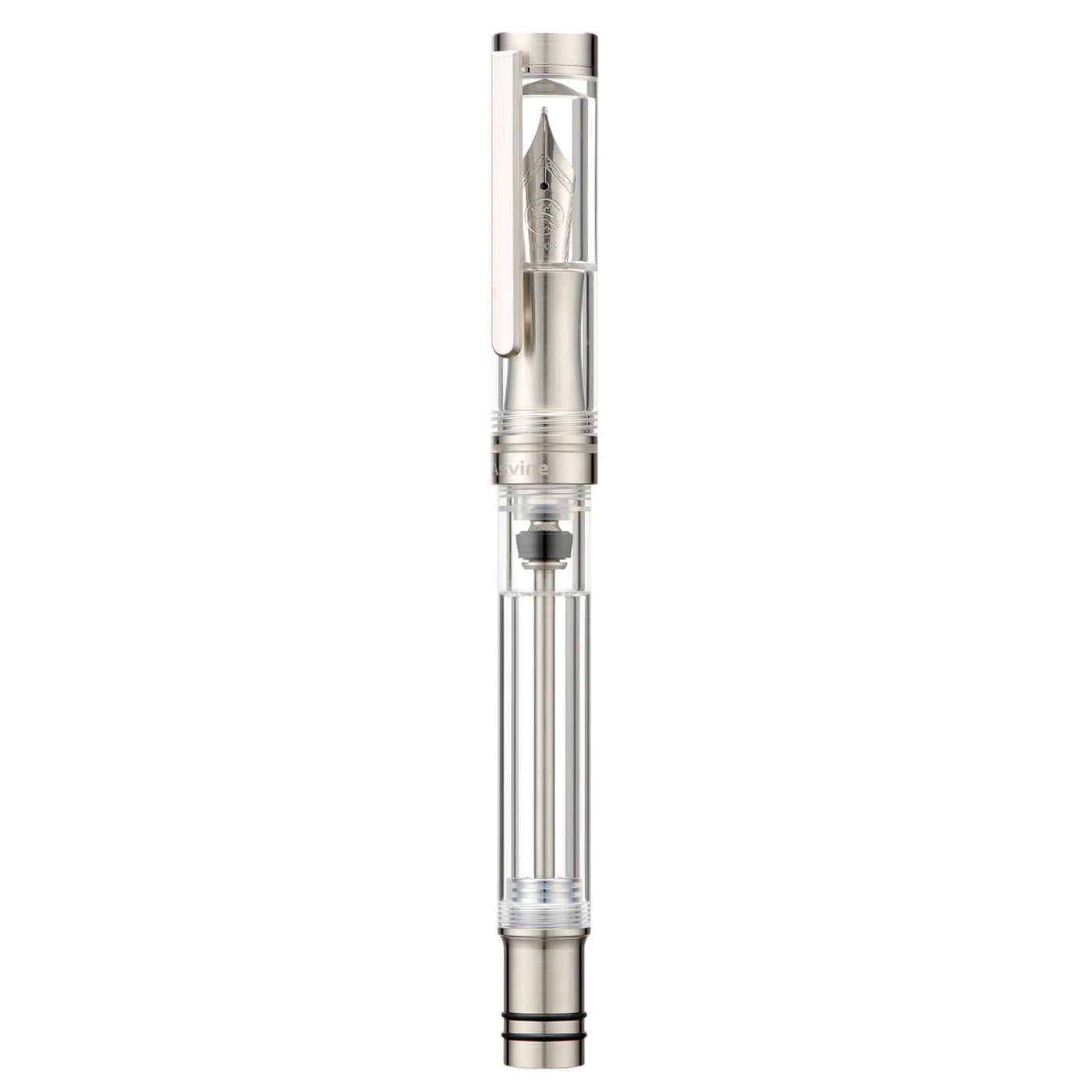 Asvine V200 Titanium Fountain Pen Vacuum Filling, Germany Bock Extra Fine Nib Clear Transparent Acrylic Smooth Writing Pen Case