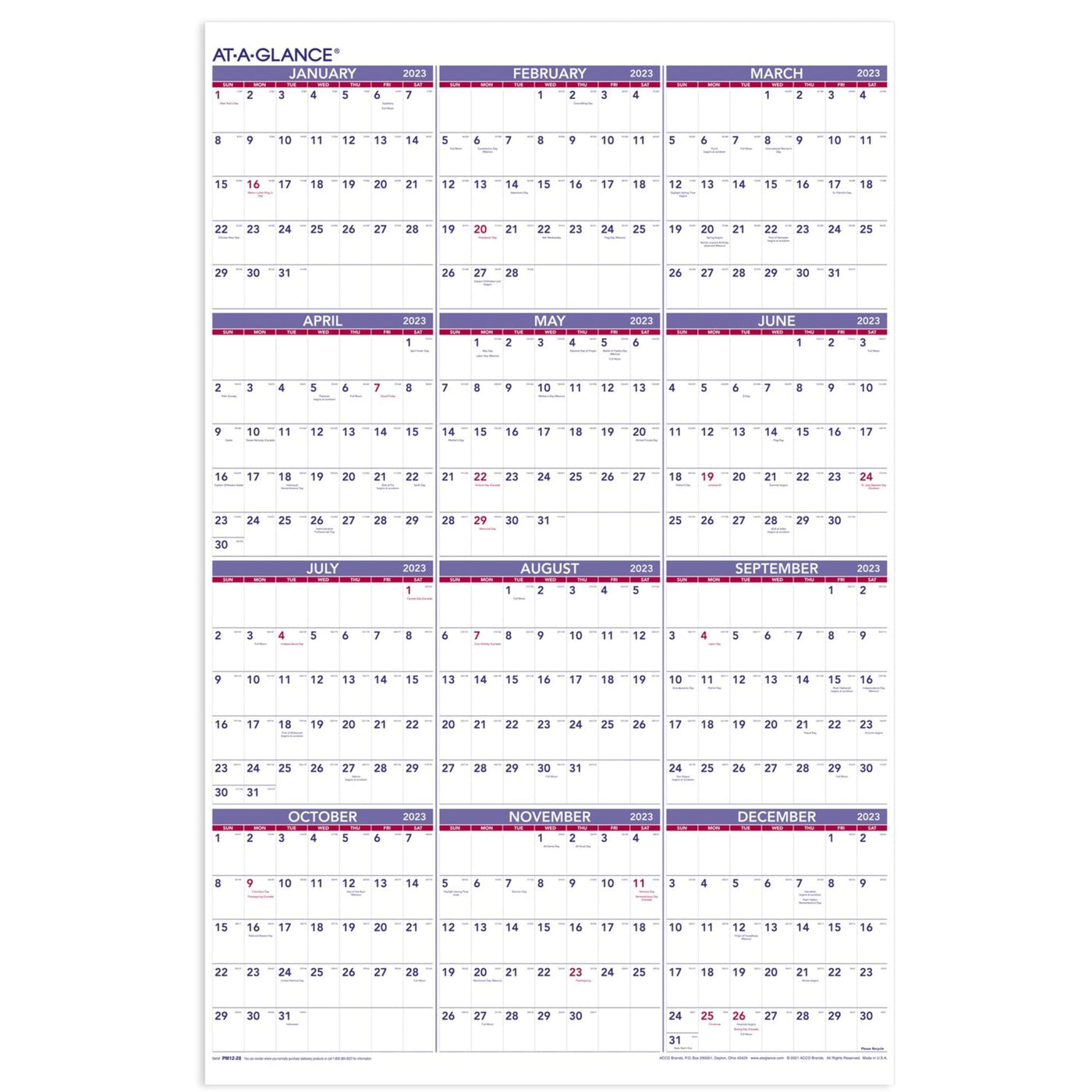 Keep Track Of Daily Tasks, Important Deadlines, Special Events And More With Clear Organization And Unique Style. The At-A-Glance Yearly Wall Calendar Covers 12 Months From January 2023-December 2023 For Yearly Planning. Plan Your Schedule Without Fear Of Distracting Ink Bleeding. Our Improved, High-Quality Paper Is Designed For Superior Ink Bleed Resistance, Which Keeps Plans Neat And Legible. Great For Long-Term Planning, The Entire Year Is Shown On A Single Page. Each Month Has Unruled Daily Blocks For Open Planning. Pages Measure 24' X 36'. Blocks Measure 1' X 1/2'.