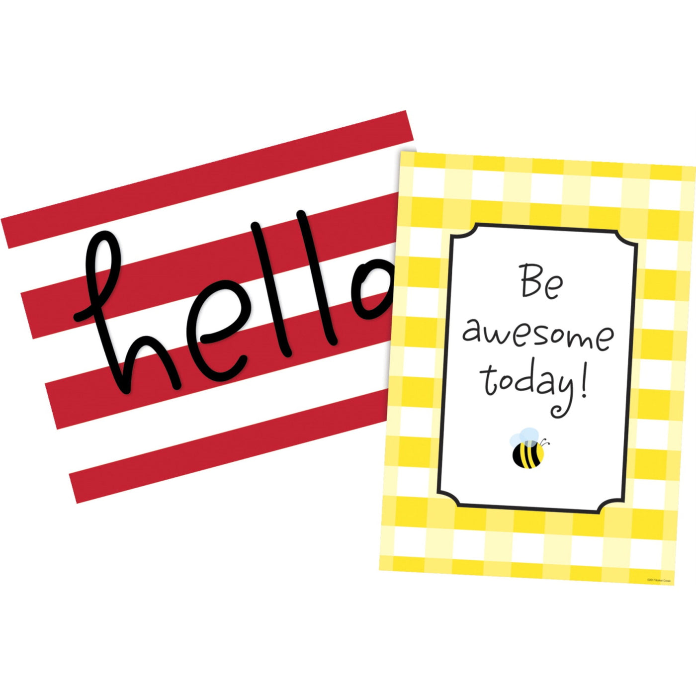 Barker Creek'S Hello! You'Re Awesome Poster Duet Set Includes Two Beautifully Designed Motivational Posters Perfect For Office, Classroom, And Home Use. Each Poster Measures 3-3/8 X 19 Inches. The First Poster Features On-Trend Wide Red And White Stripes With A Welcoming, 'Hello,' And The Second Poster Features Yellow Buffalo Plaid With The Saying 'Be Awesome Today.' The Posters Are Printed On Durable 12 Pt. Stock, And Whether You Choose To Frame Them Or Simply Hang Them As Is, They Are Stunning! Sold As A Set Of 2. Made In The Usa.