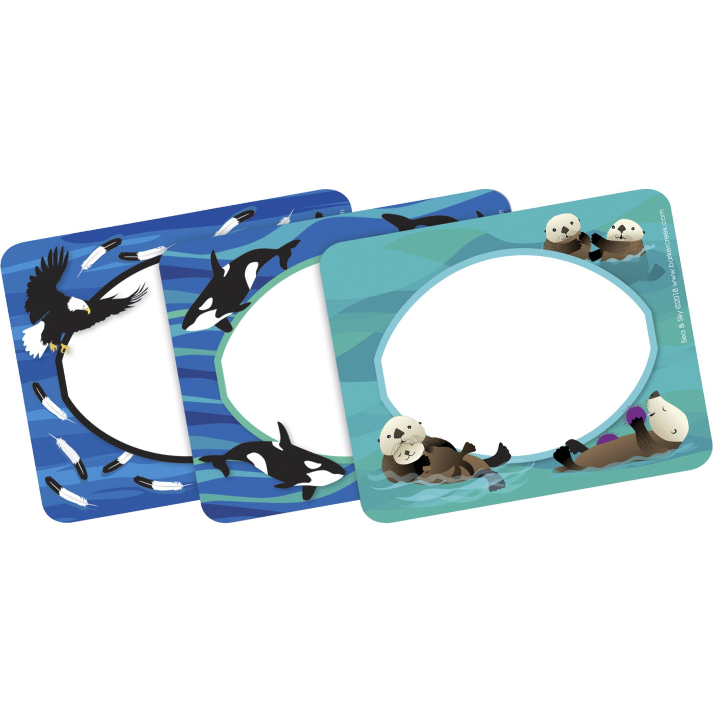 Barker Creek Self Adhesive Name Badges/Labels, Sea And Sky, Pack Of 45