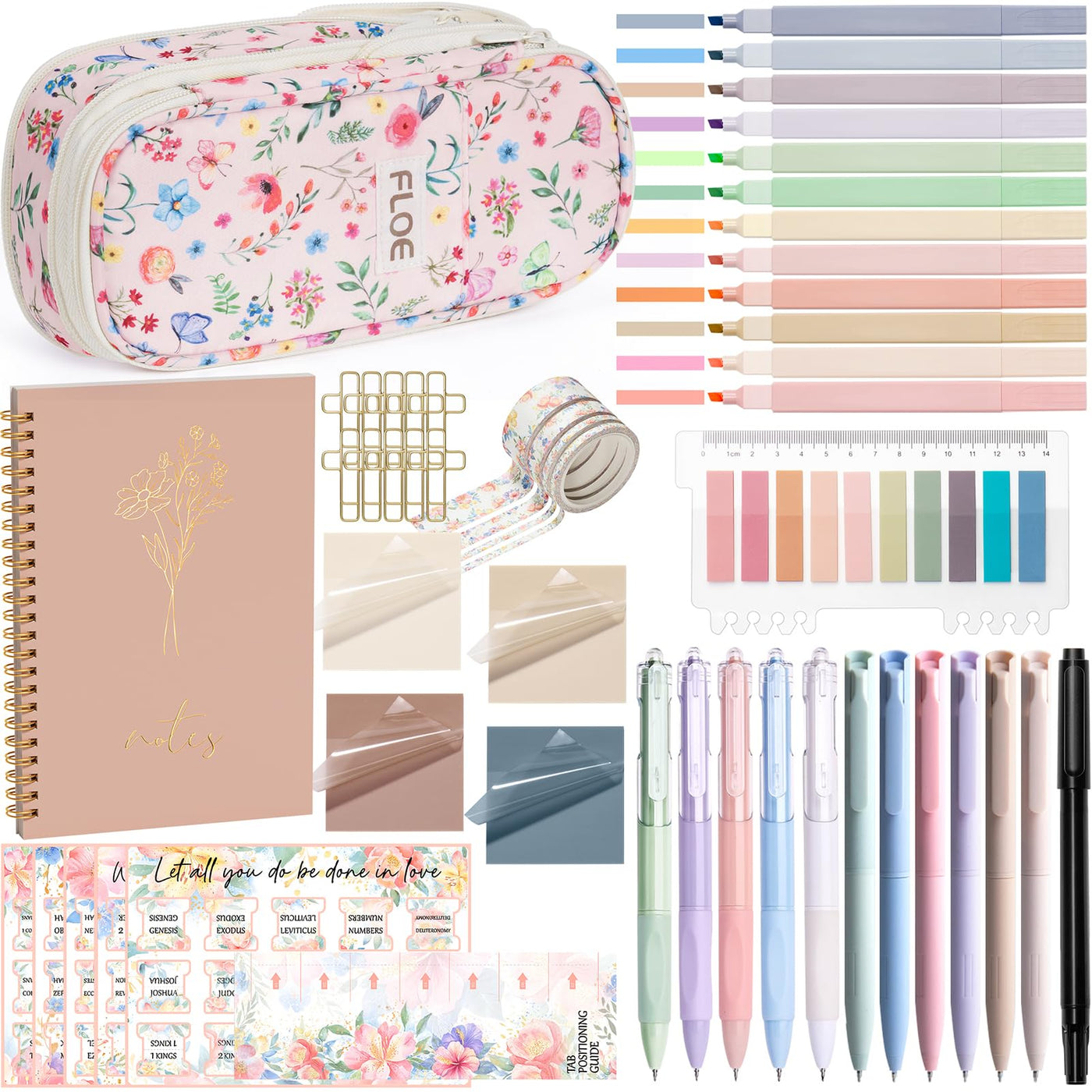 Floe Bible Study Supplies Christmas Christian Gifts For Women, 8 Beautifully Designed Styles For You To Choose Fromsearching For A Stunning Christian Gifts For Women To Impress Her At First Sight And Warm Her Heart? Dreaming Of Gifting An Exquisite Bible Journaling Supplies Kit That Exudes Style And Elegance For The One Who Believe In Christian To Show Your Love And Support? Floe Christian Gifts For Women Bible Journaling Kit Is Precisely What You Need. This Beautiful Bible Stationery Accessory Set Has Everything You Need At Your Fingertips. Delight Her And Make Her Feel Truly Cherished With This Stylish And Practical Bible Study Journaling Supplies Set.Perfect Bible Journaling Kit - Everything You Need In One Set!Elevate Your Bible Study Experience With Our All-In-One Set, Thoughtfully Designed To Support Every Aspect Of Your Journaling Journey. This Kit Includes A Pencil Case, 12 Bible Highlighters, 6 Color Gel Pens, 5 Black Gel Pens, 1 Double-Ended Marker, 75 Bible Tabs With A Positioning Guide, 4 Color Transparent Sticky Notes, 200Pcs Sticky Index Tabs And An Aesthetic Spiral A5 Notebook.With Additional Essentials Like 10 Cross Clips And 4 Rolls Of Washi Tape 3 Sizes, All Beautifully Packaged In An Elegant Gift Box. This Journaling Supplies Kit Is Perfect For Highlighting Key Verses, Making Detailed Notes Or Adding Decorative Touches To Your Pages. Large Capacity Pencil Pouch Helps You Organize All Kinds Of Stationery Supplies And Improve Your Bible Study Efficiencymade Of Durable Canvas And Sturdy Material, The Pencil Case Comes With A Double Smooth Zipper. Expandable Pen Case Can Easily Hold 70-100 Pens When Unfolded, Making It Easy To Access Bible Highlighters, Bible Pens, Erasers, Washi Tape, Cross Clips And More.The Pencil Bag Is A Thoughtful Addition To Keep All Your Supplies In One Place. Its Compact, Easy To Carry And Helps Maintain A Neat Study Area.