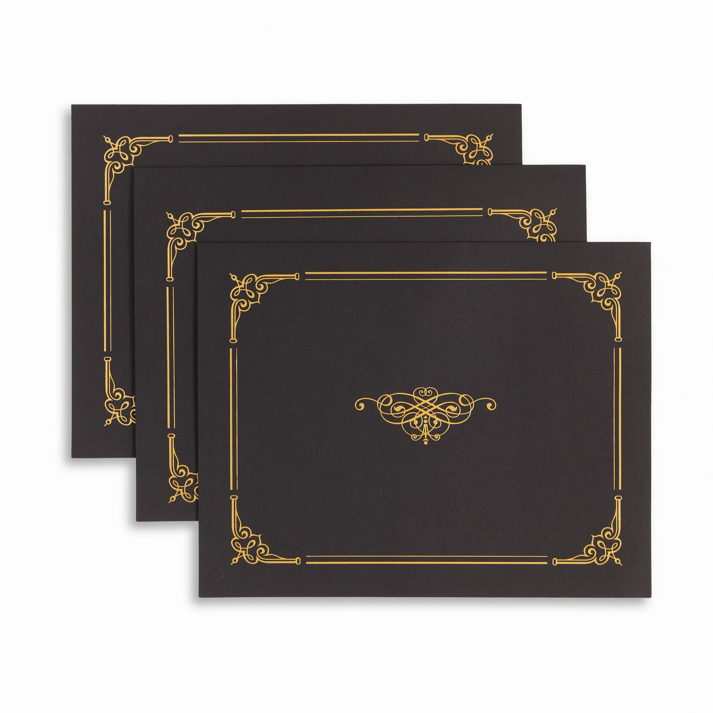 Proudly Display Your Awards And Certificates These Black Certificate Holders With Gold Foil Will Keep Your Awards And Certificates Safe, While Also Making Them Look Elegant. Add A Professional, Elegant Touch To Your Year End School Awards Ceremony Or Employee Awards. Letter Size, And Able To Hold Awards And Certificates Of Any Thickness Reinforced End Tab And Black Cover Protects Whatever Items You Want To Keep Inside. 25 Pack Is Perfect For Classrooms Or Offices Where Awards Or Certifications Are Frequently Handed Out. Made From 300 Gsm Black Linen Paper, With Gold Foil Calligraphy Design On Each Holder Elegant But Durable Award And Certificate Holders When You Have Awards To Give Out, Or Receive Awards, You Want To Be Able To Protect Them, While Also Being Able To Display Them. Our Durable, Black Award And Certificate Holders With Gold Foil Design Are Perfect For Both. Made From 300 Gsm Linen Paper, These Holders Are Elegant But Durable, And Can Hold Letter Size Awards And Certificates Of Any Paper Thickness. Pack Includes 25 Holders