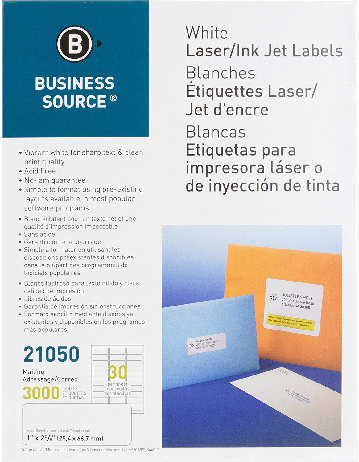 Business Source Mailing Laser Label, 1X2-5/8, 3000/Pk, White, 4 Pack