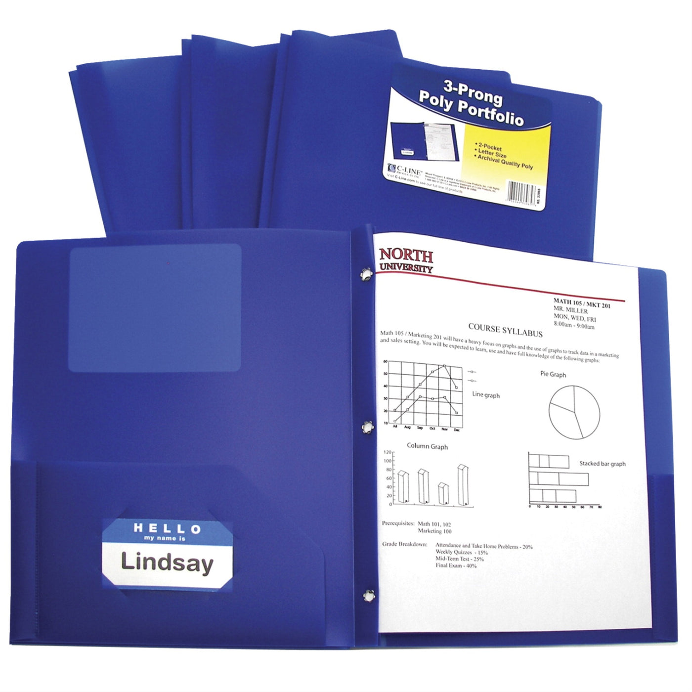 Specialty Two-Pocket Heavyweight Polypropylene Folders Keep Letter-Size Papers Organized, While Still Remaining Accessible. Includes A Business Card Slot And Prongs To Secure 3-Ring Punched Paper. Folders Are Tear Resistant. Sold As A Pack Of 25 Blue Folders.