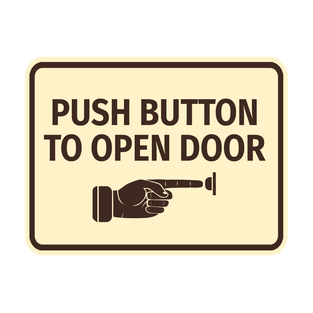 Classic Framed Push Button To Open Door (Finger Pointing Right) Sign (Ivory/Dark Brown) - Large