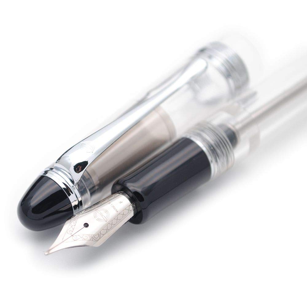 Czxwyst 699 Negative Pressure Vaccum Filling Fountain Pen Original Box (Transparent With Silver Clip And Solid Grip, Fine Nib 0.