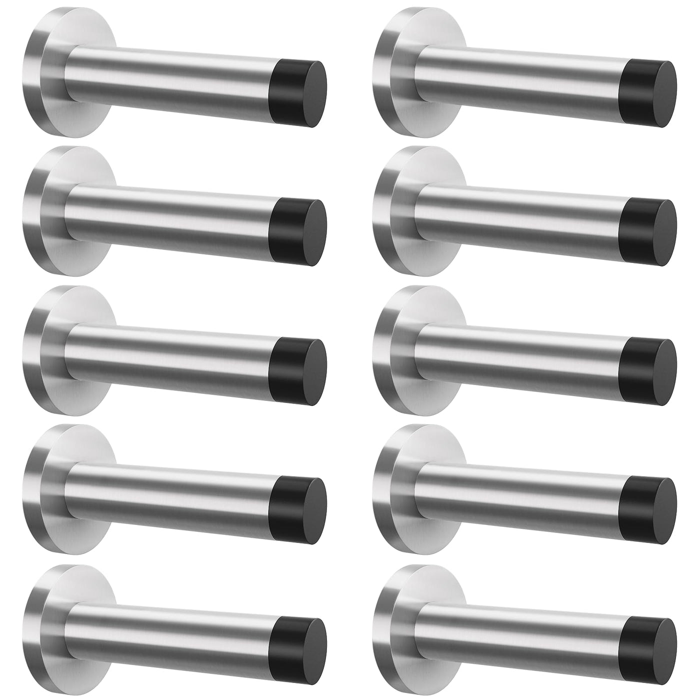 Doku 10Pcs Door Stop, 3.5 Inch Heavy Duty 304 Stainless Steel Door Stopper With Rubber Tips Bumper, Wall Mounted Door Holder Pro