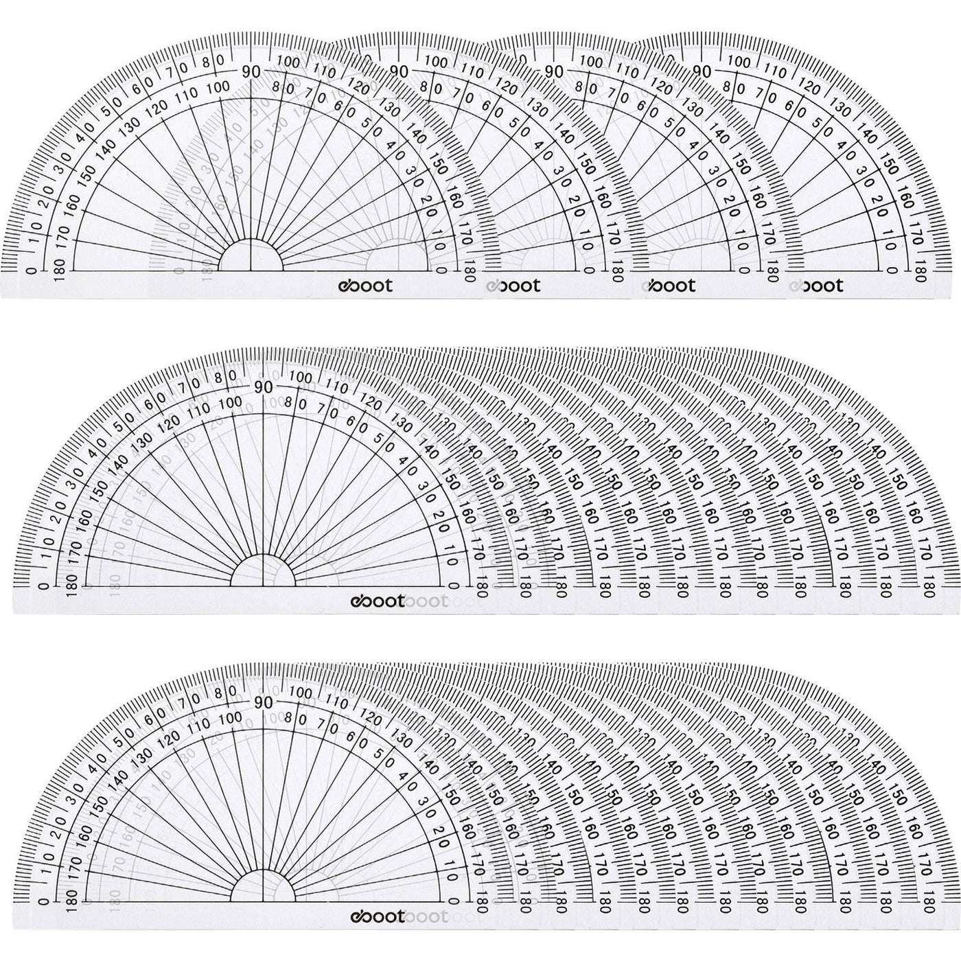 Eboot 28 Pack Clear 180 Degree Plastic Protractors For Angle Measurement, 10 Cm Features: Transparent Plastic Protractors Set: 28 Pack Of Protractors In Total; Made Of Clear Plastic, Allow You To See The Words, Letters, Figures Through The Tool Directly And Get The Information Accurately And Quickly. Size: The Bottom Side Length Is 10 Cm/ 4 Inch, Suitable Size For Easy To Put On Your Books, Notebooks And Pencil Case; The Measuring Range Is From 0 To 180 Degree, Each 10 Degrees Have A Clear Line To Distinguish. Wide Range Of Uses: The Geometry Protractors Are Suitable For Painting, Home And Office Using, Measurement, Homework, Technical Drawing; Abundant Bulk, Great Gifts To Your Friends And Classmates. Specification: Protractor Size: 10 X 5.5 Cm Material: Plastic Minimum Accuracy: 1 Degree Quantity: 28 Pack Package Includes: 28 X Protractors