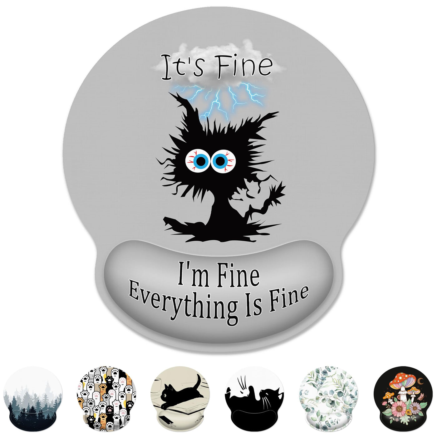 Ergonomic Mouse Pad With Wrist Support,Lightning Black Cat Mouse Pad With Wrist Rest,Relieve Wrist Pain Mousepad Non-Slip Rubber