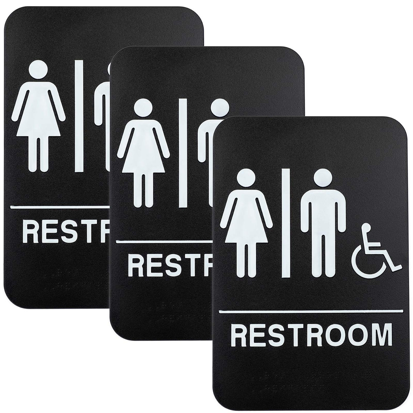 No Need To Think Which Lavatory Or Restroom To Use With These Ada Approved Signs. These Labels Clearly Indicate The Restroom'S Location Within The Premises. Written On A Black Plate That Include The Gender By Symbol, Writing, And Braille To Help Visually Impaired People. These Signs Come With Adhesive Strips For Easy And Secure Mounting. With It'S Simple To Use Application, These Signs Will Helpp Direct And Keep Everyone In The Right Place.
