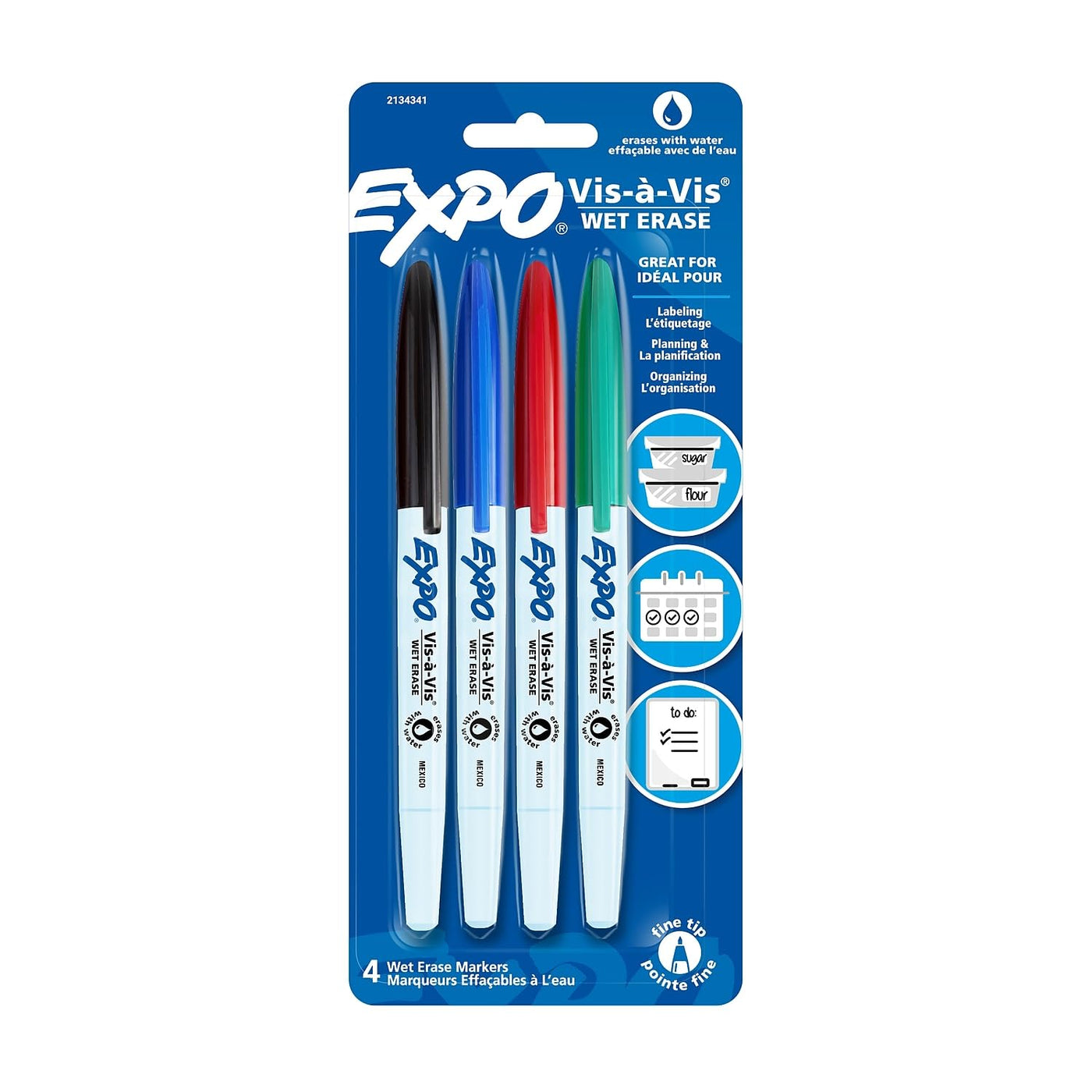 Expo 16074 Vis-A-Vis Wet-Erase Marker Fine Point Asstd. 4/Set